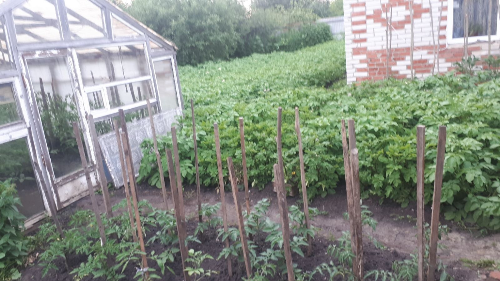 Чистый, ухоженный участок. На участке 2 теплицы, колодец для полива, насаждения (яблони, вишня, смородина, крыжовник, ежевика, малина, клубника, виноград).