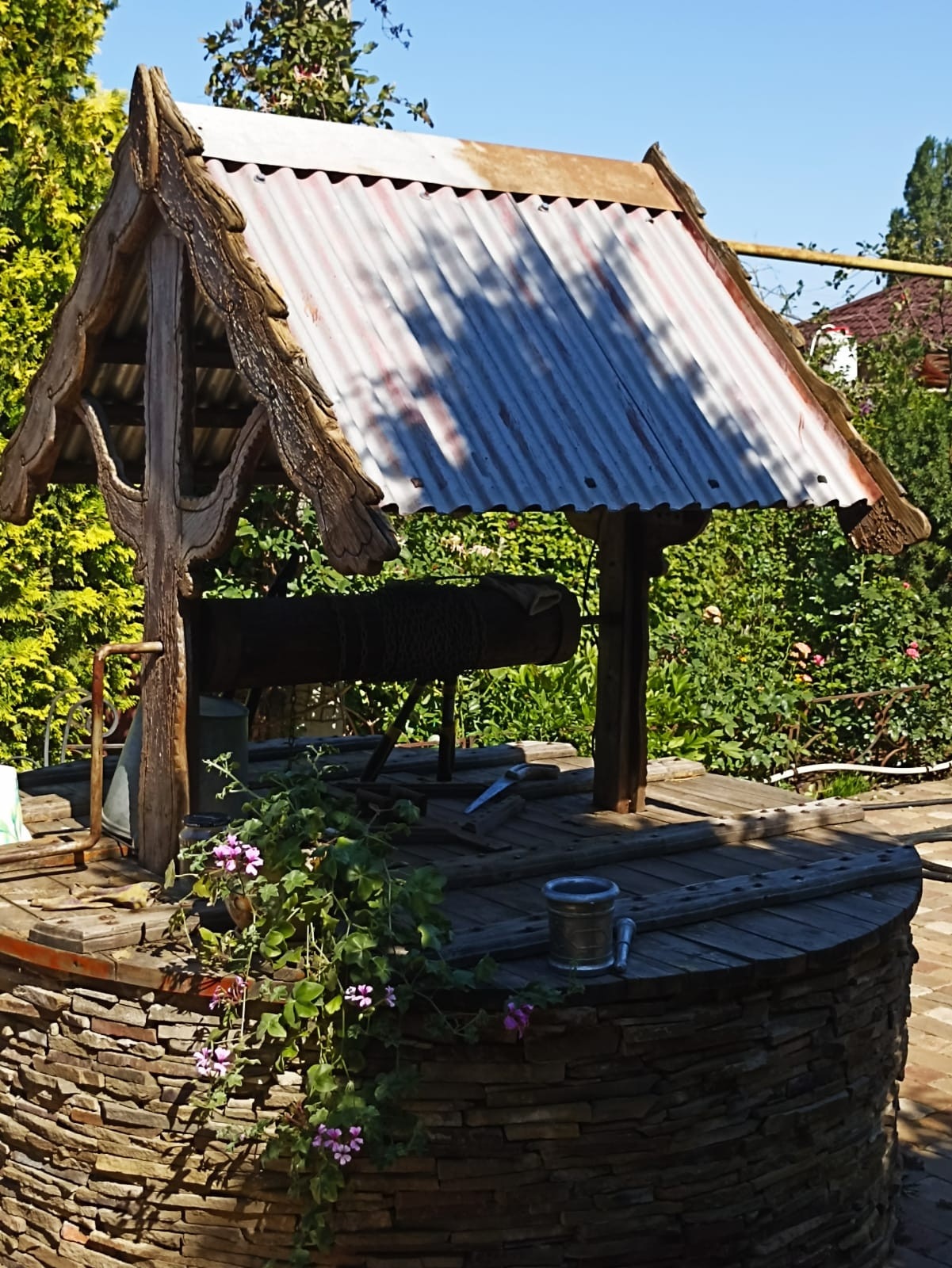 На участке 13 соток есть: бассейн, сауна, зимний сад, пруд с рыбками, колодец.