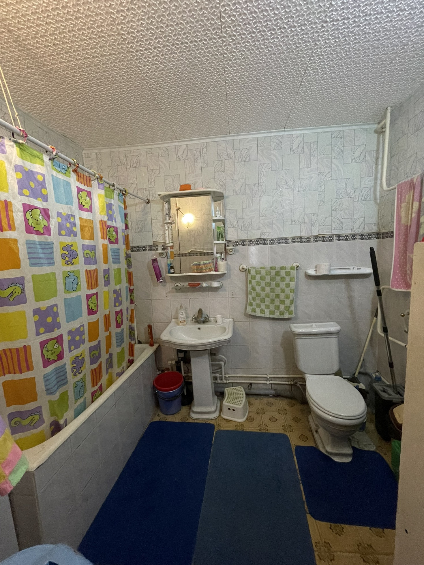 Сан.узел совмещен, выложен плиткой.