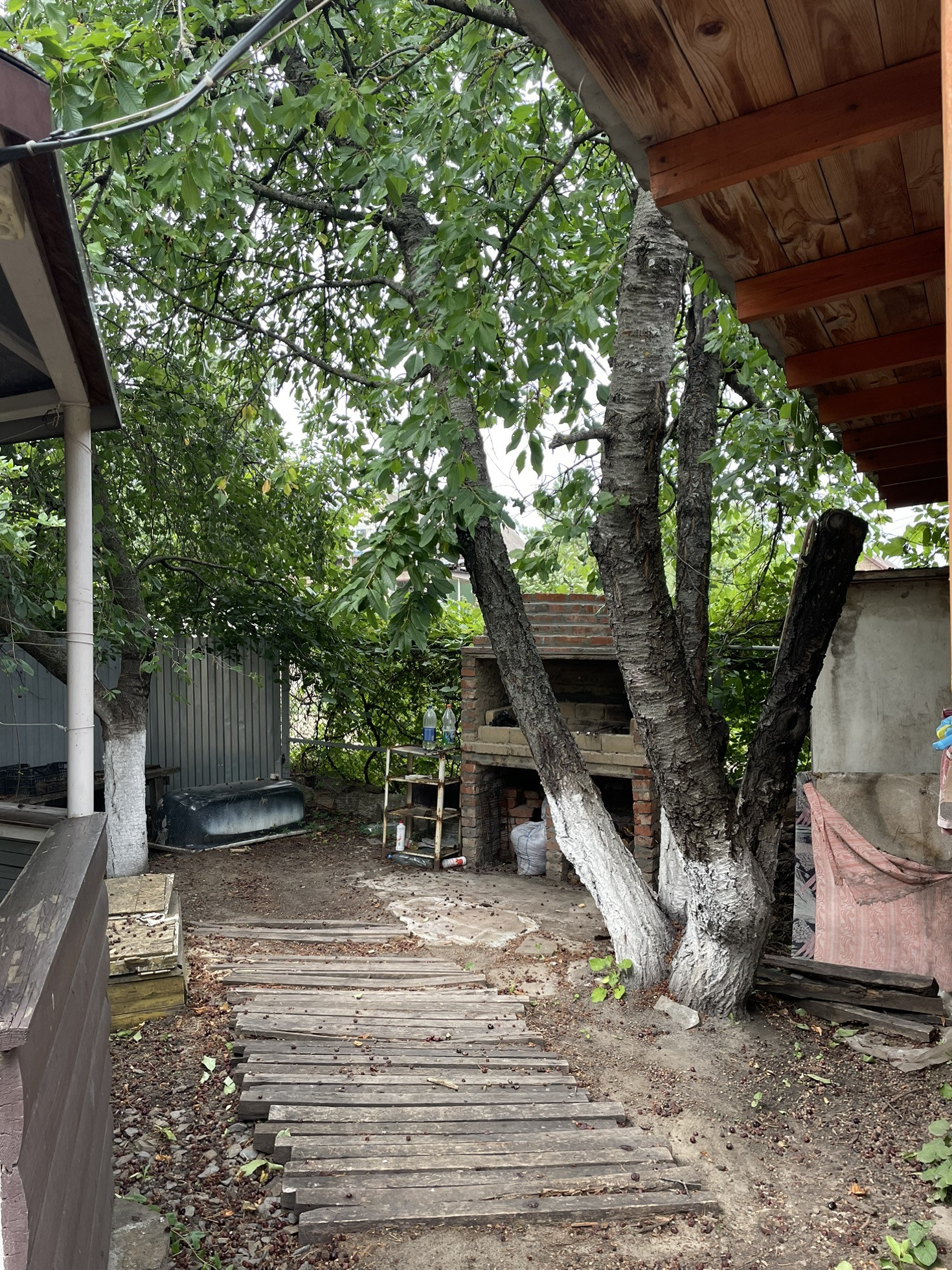 Участок 8 соток, есть гараж, мангальная зона, беседка, зона отдыха. Двор ухоженный, асфальтированный, есть плодовые деревья.