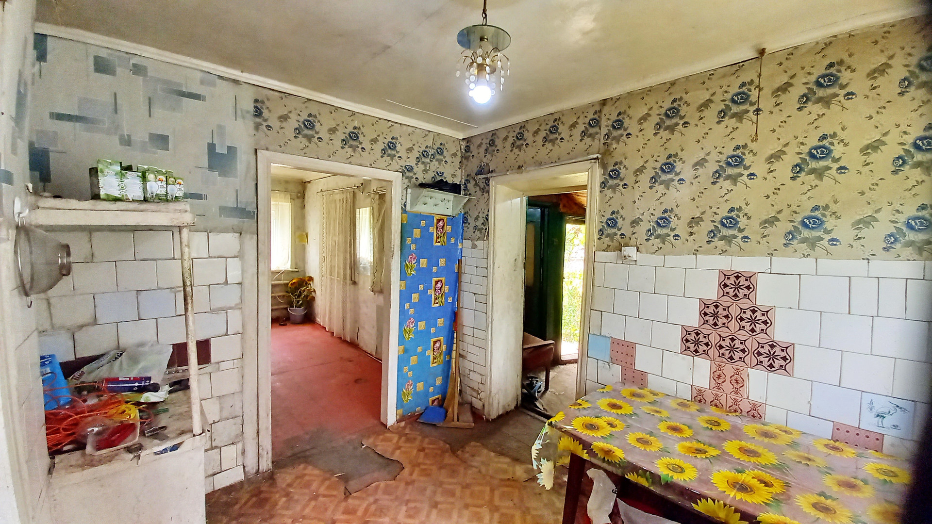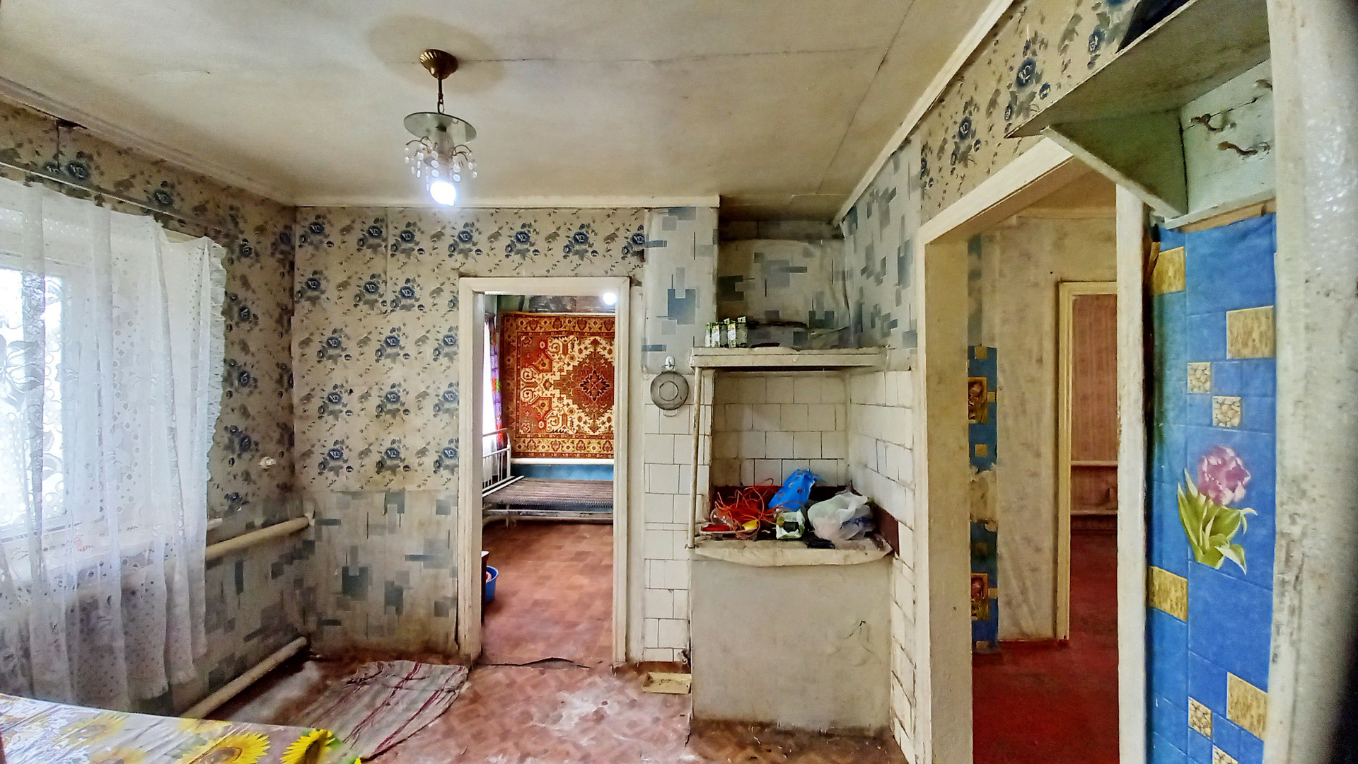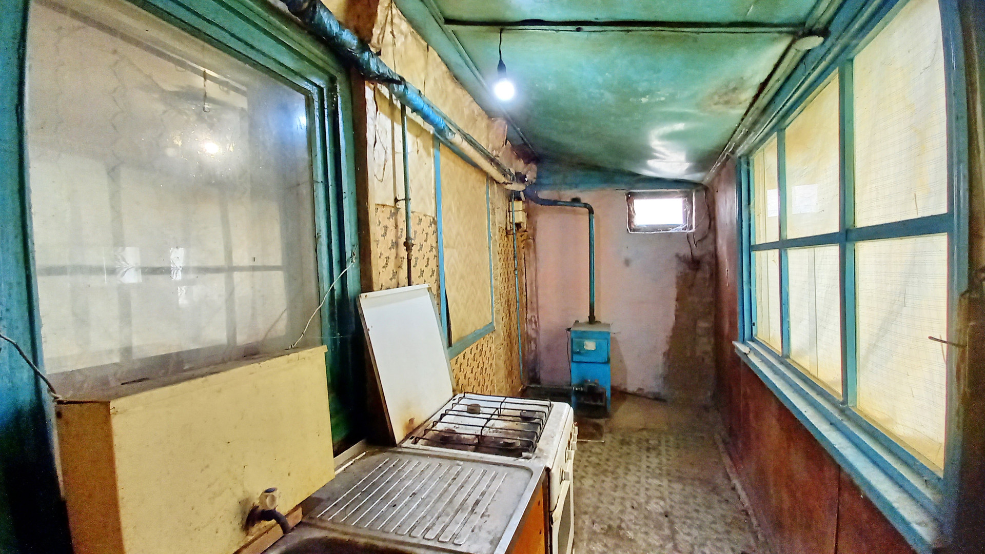 В доме 4 комнаты, кухня. Двойные, остекленные оконные рамы во всех комнатах, в одной из спален установлено ПВХ окно. Полы - не гнилые, не "гуляют". Потолки "зашиты" ДВП, окрашены - высота 2,4 м. Кровля металлическая, в хорошем состоянии (см. фото) Электричество во всем доме и пристройке, которую возможно переоборудовать в полноценную ванную комнату. Дом отлавливаемый газом. Вода во дворе, возможно заведение в дом. На территории сарай, подвал.