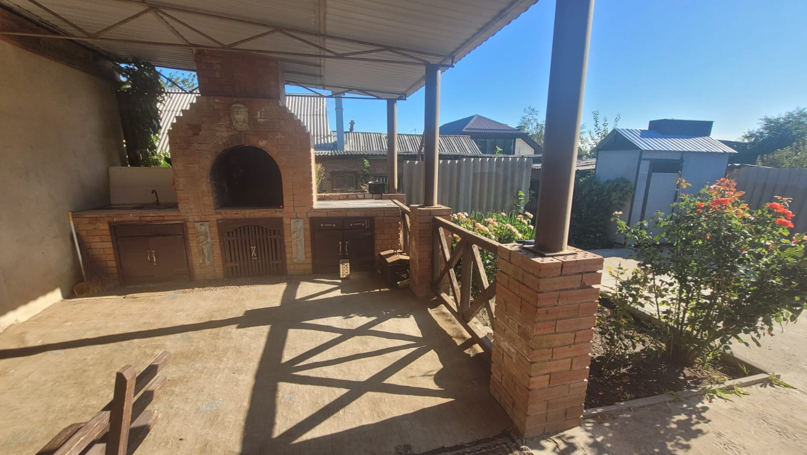 Высокий, кирпичный дом. Три спальных комнаты, большая кухня , два санузла, мебель, бытовая. Навес, гараж. Зона отдыха с беседкой и мангалом. Все коммуникации и удобства.