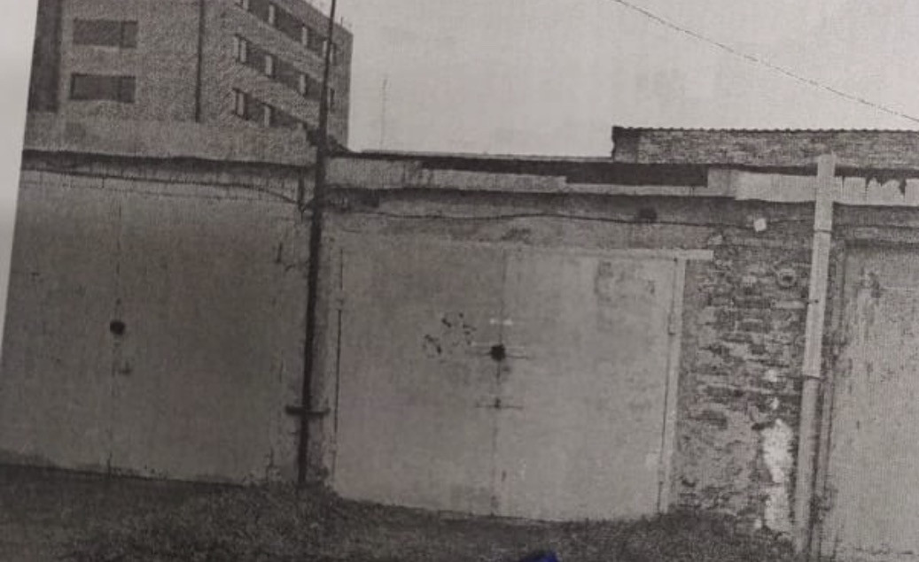 Кирпичный гараж в кооперативе с металическими воротами.