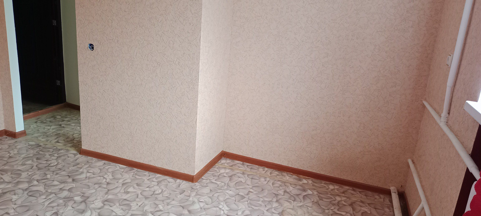 в комнате сделана и узаконена перепланировка, разделена на 2 комнаты: кухня и спальня