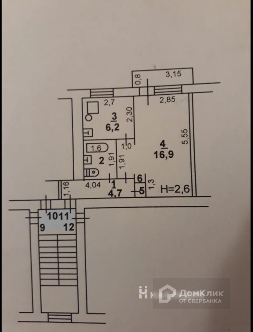 Балкон, лоджия 1 балкон