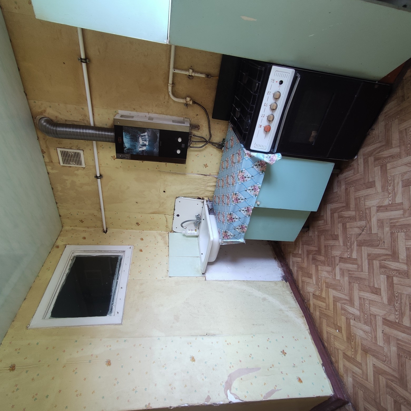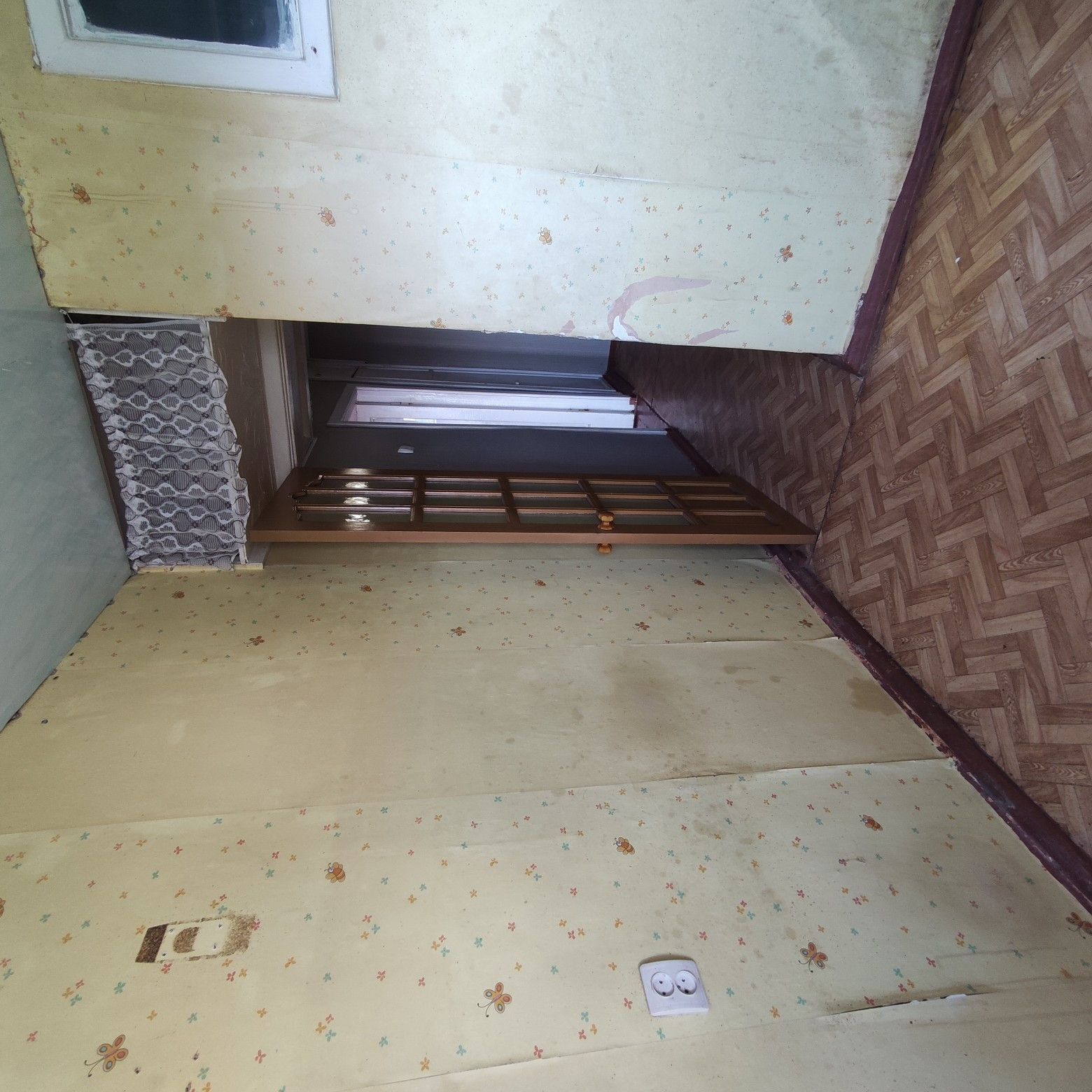 Квартира в жилом состоянии. Требуется ремонт. Заменены дверь и окно на балкон.