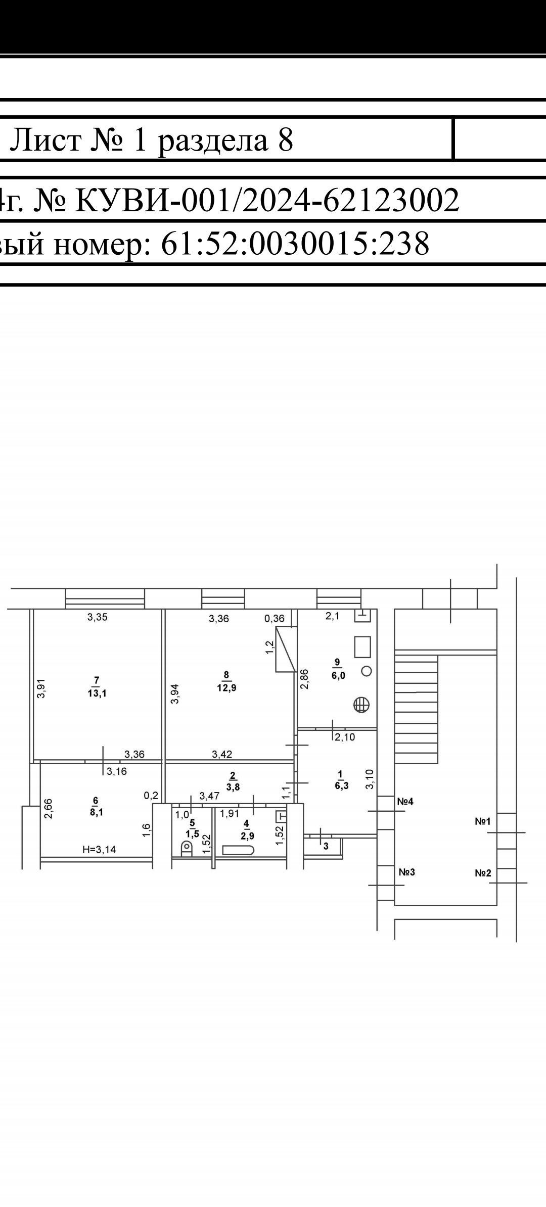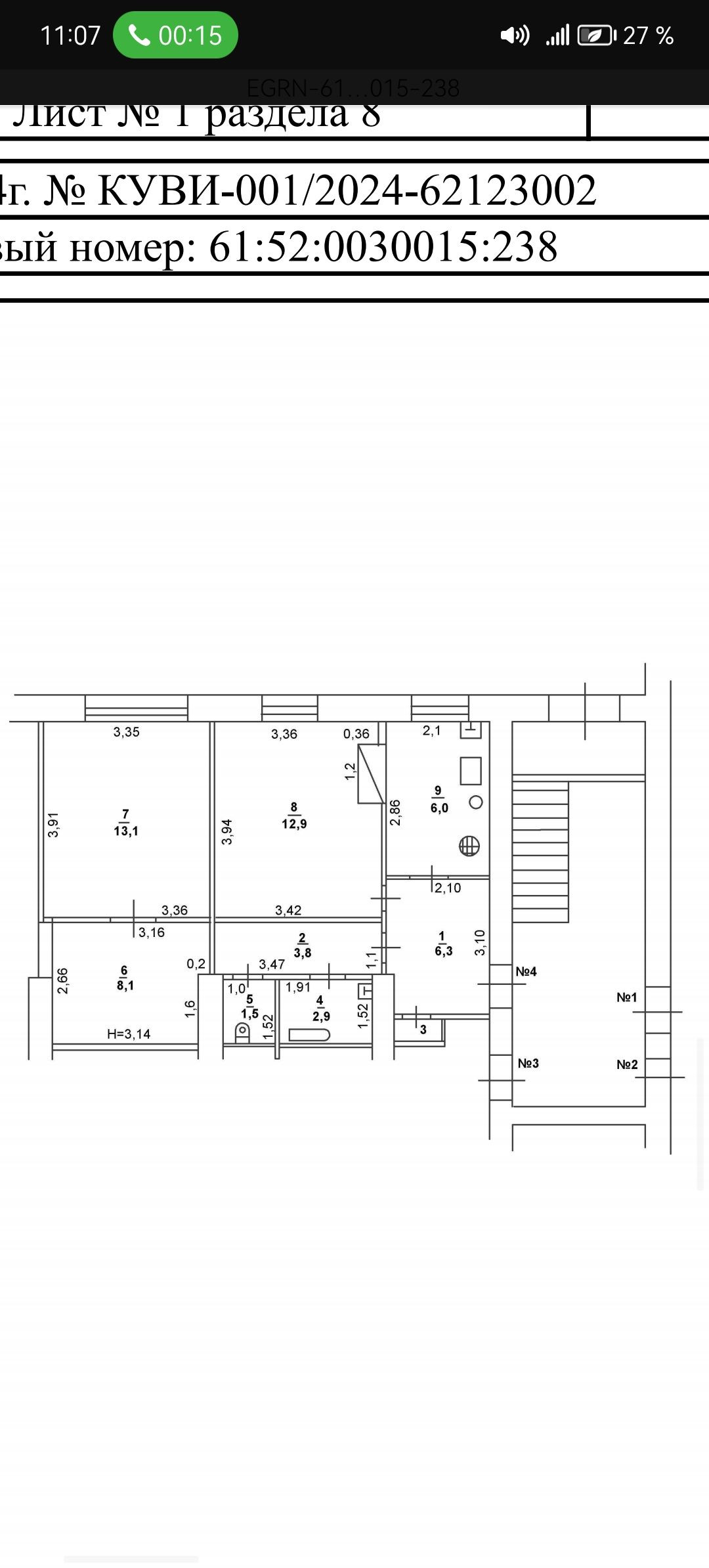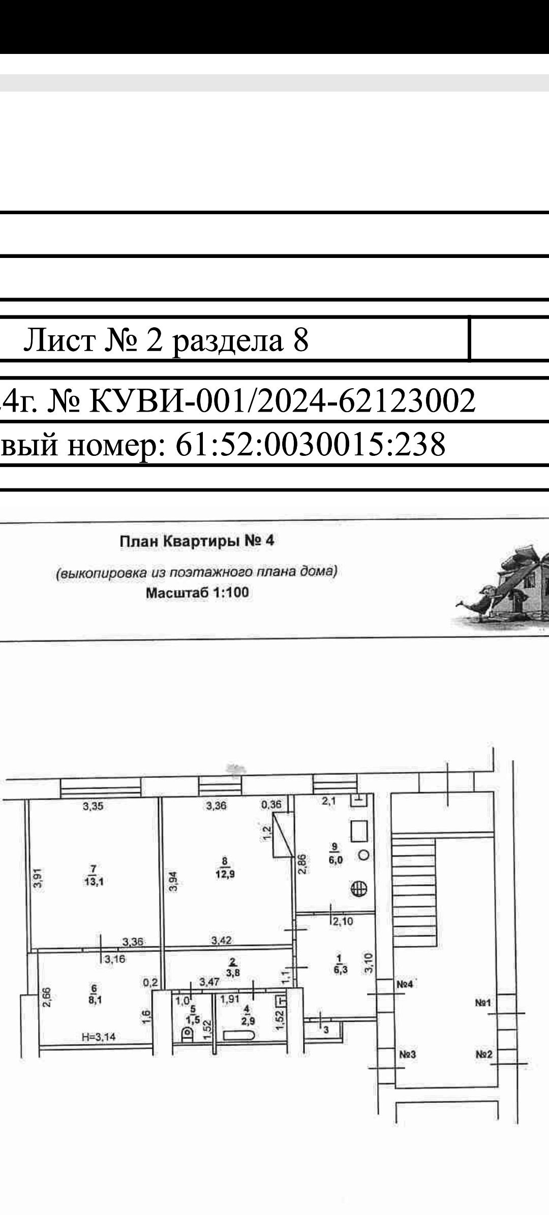 3-комнатная квартира, 55.2 м2, этаж 1 / 2, на продажу в Каменске-Шахтинском, улица Кирова, 88