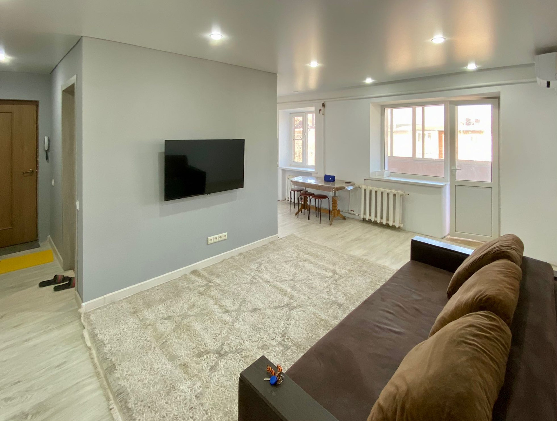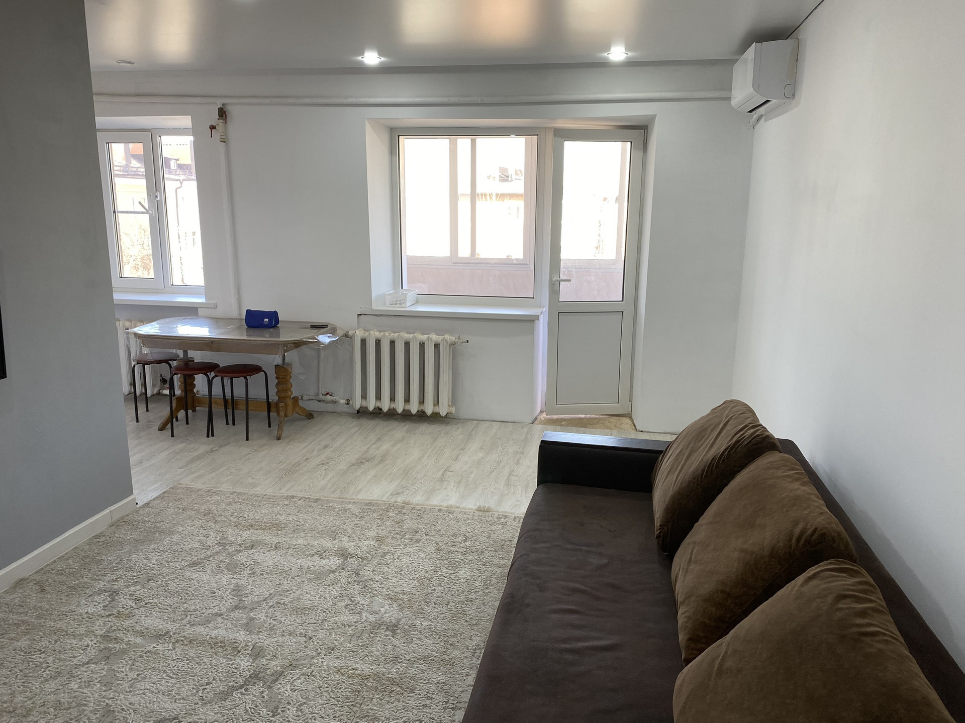 Квартира расположена на 5 этаже 5 этажного кирпичного дома, не угловая, окна выходят на разные стороны дома. Установлена сплит-система. Мебель остается частично.