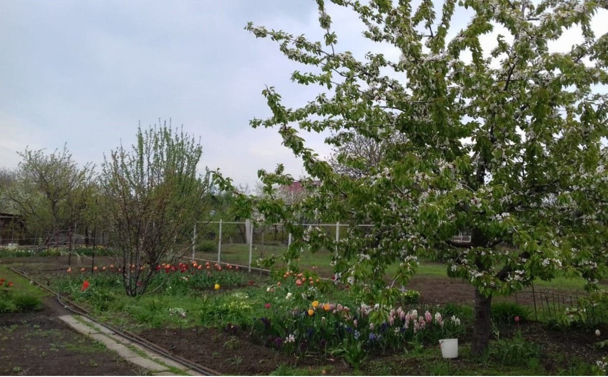 Ухоженный участок площадью 9,63 сотки под строительство или дачу, на участке имеются: туалет, водопровод, кладовка для инвентаря, молодой фруктовый сад, виноград, различные кустарники,  электричество (столб рядом), газ по улице.