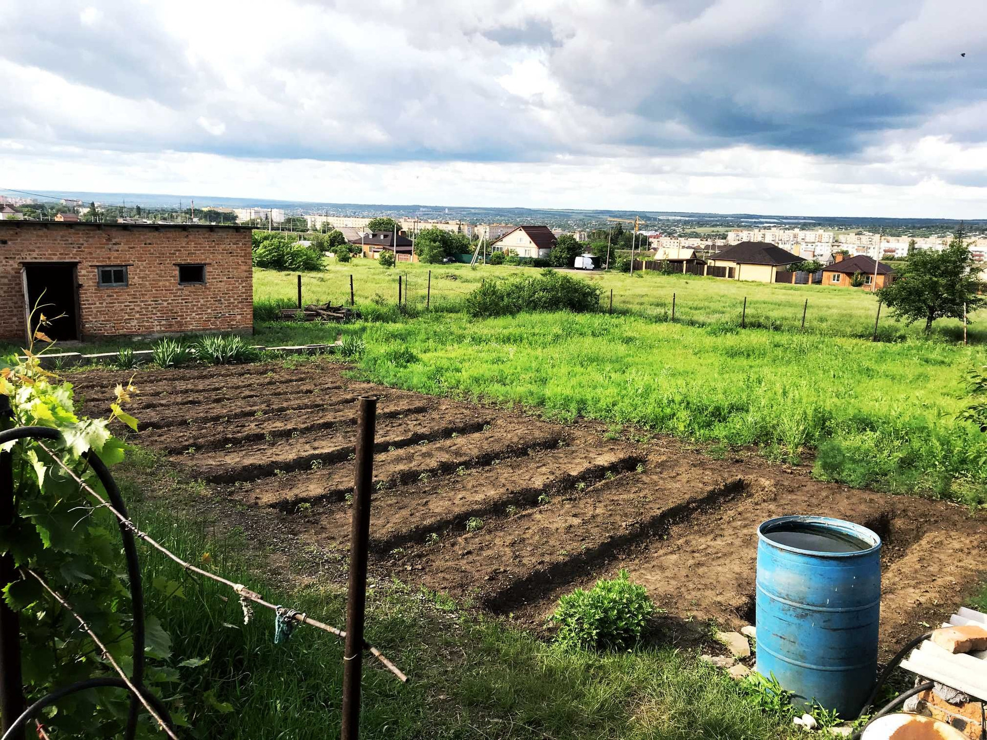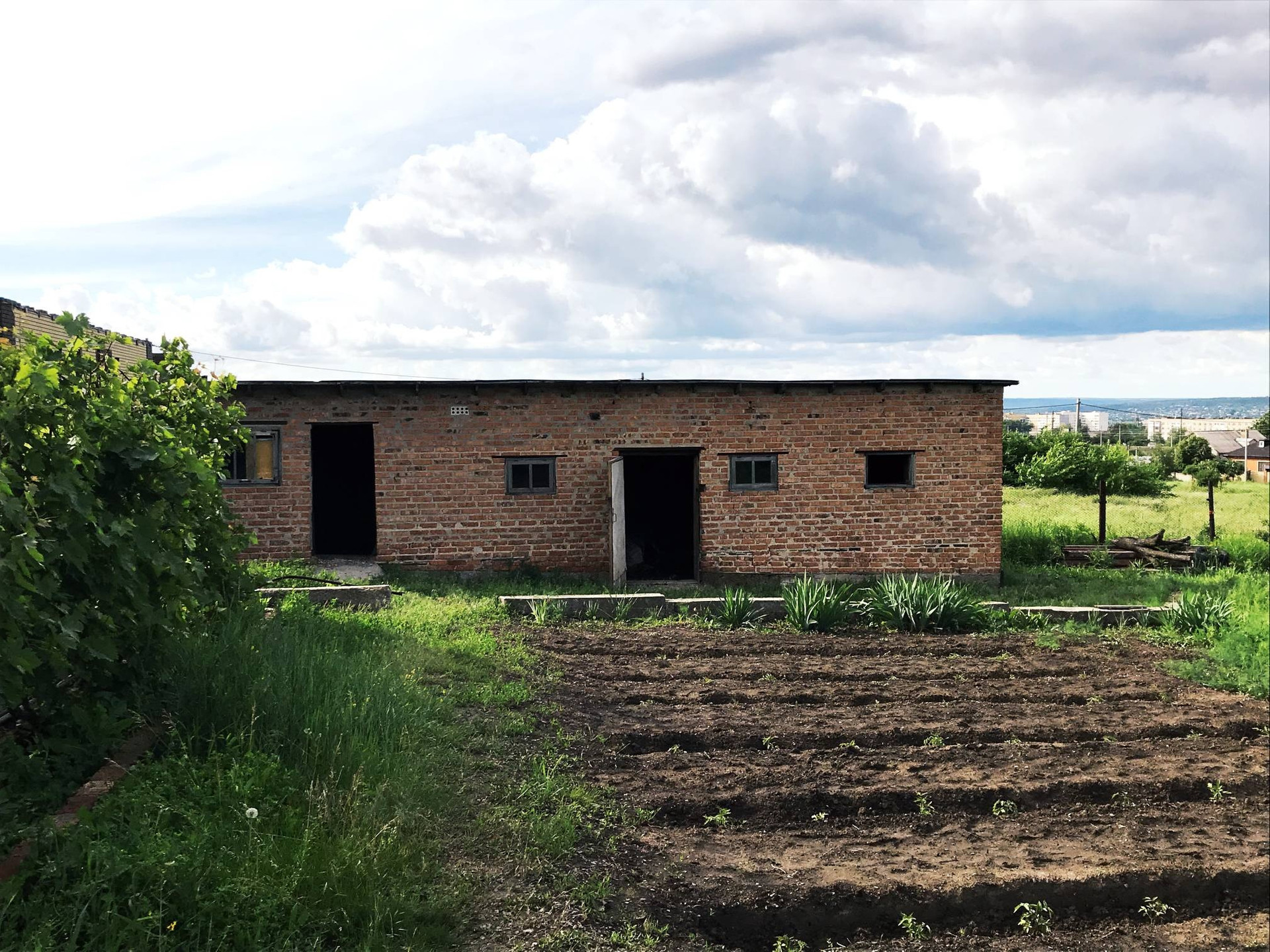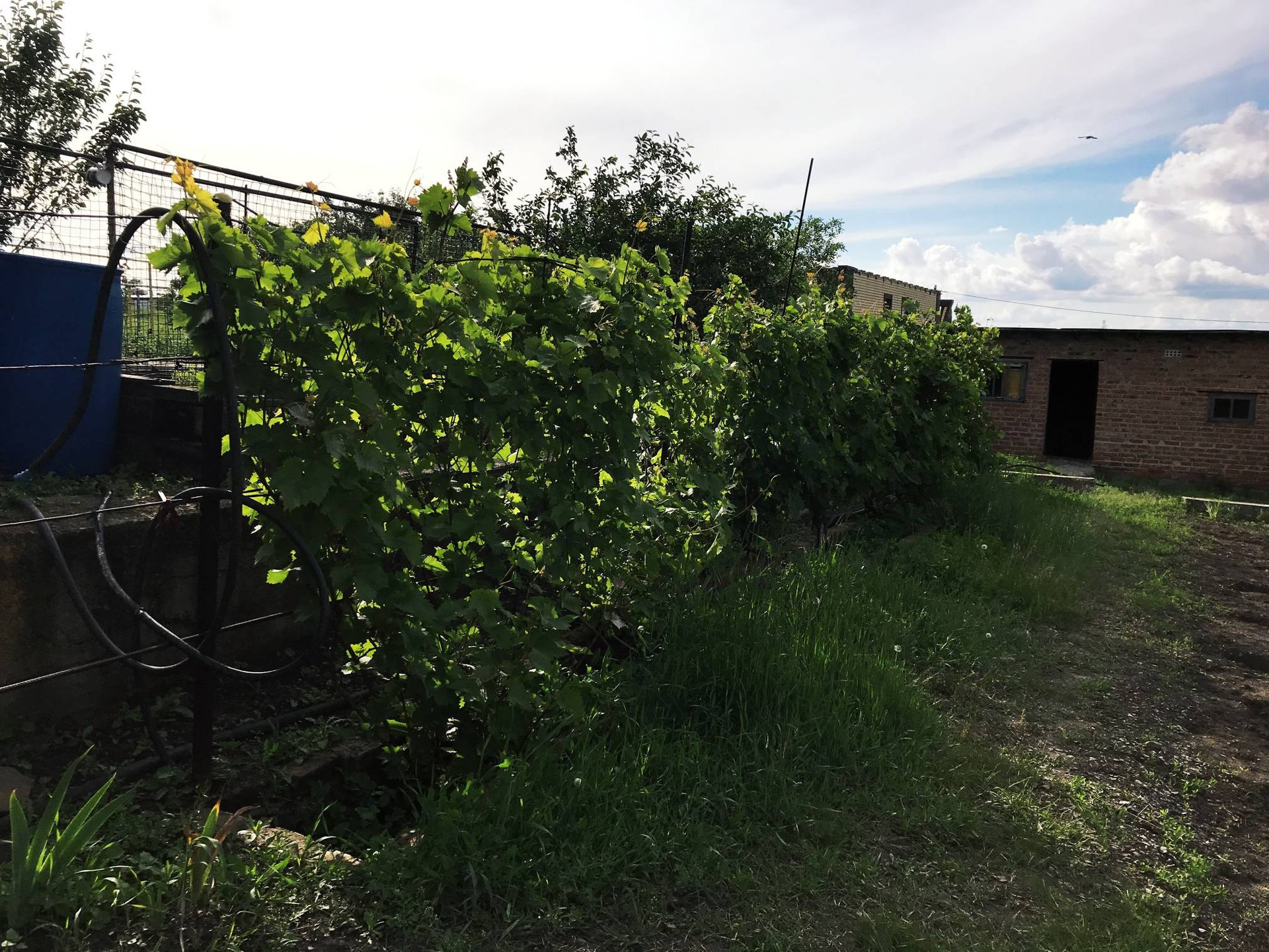 На участке есть скважина, хоз. постройки, сад, виноградник. Свет и газ по меже.