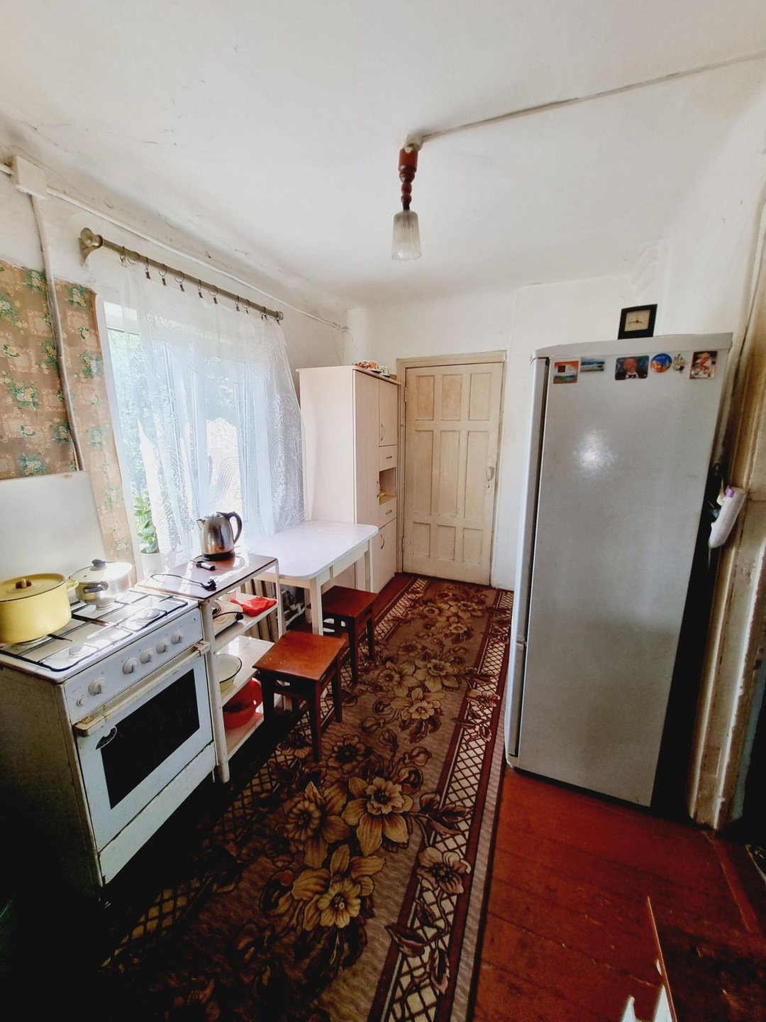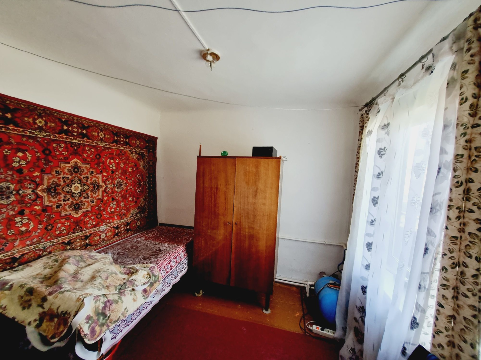 Дом из бруса, три комнаты, кухня, есть помещение (пристрой) где можно разместить ванную комнату. Отопление - центральное, вода - скважина (заведена в дом), новая электропроводка, пластиковые окна.