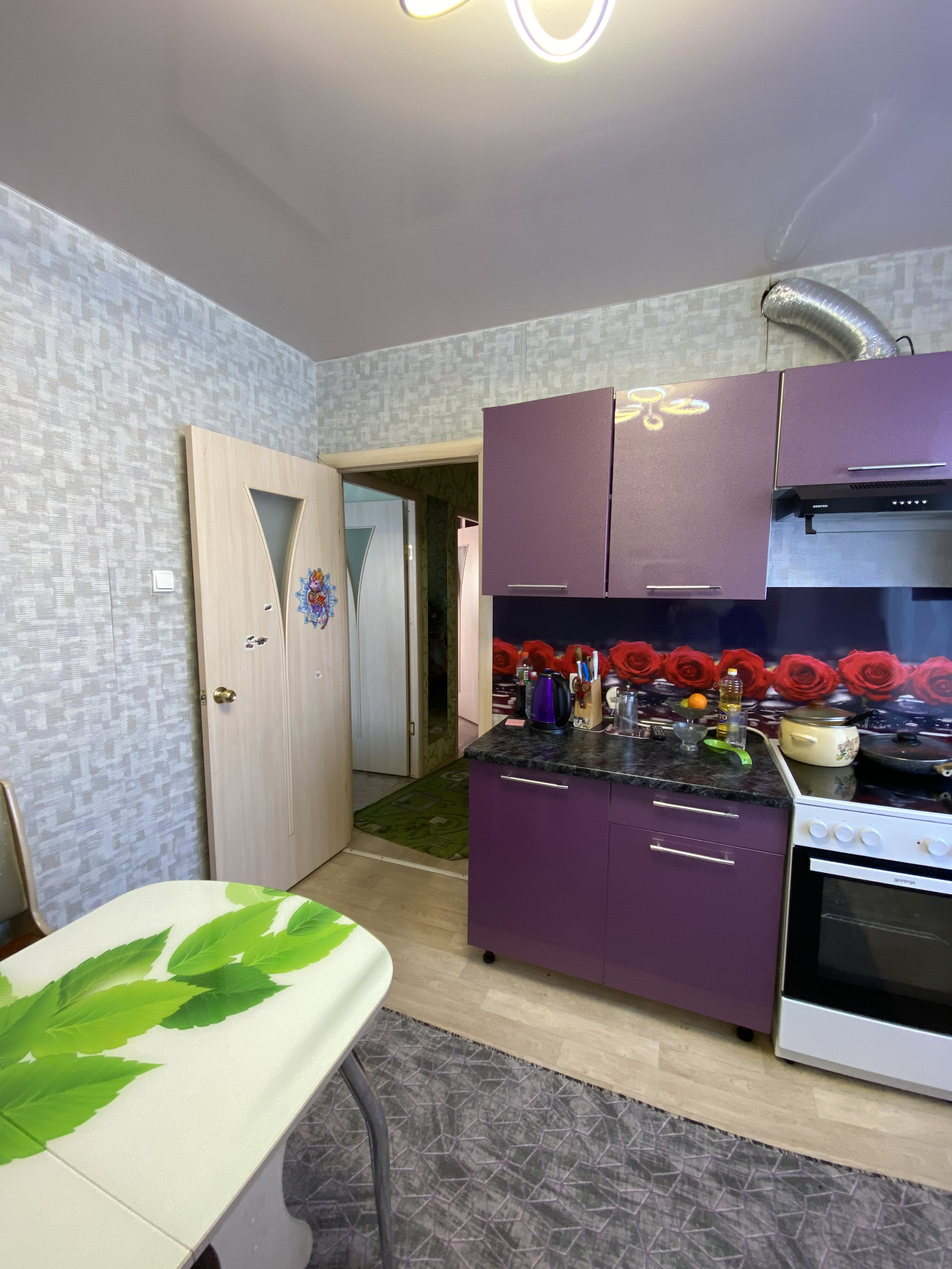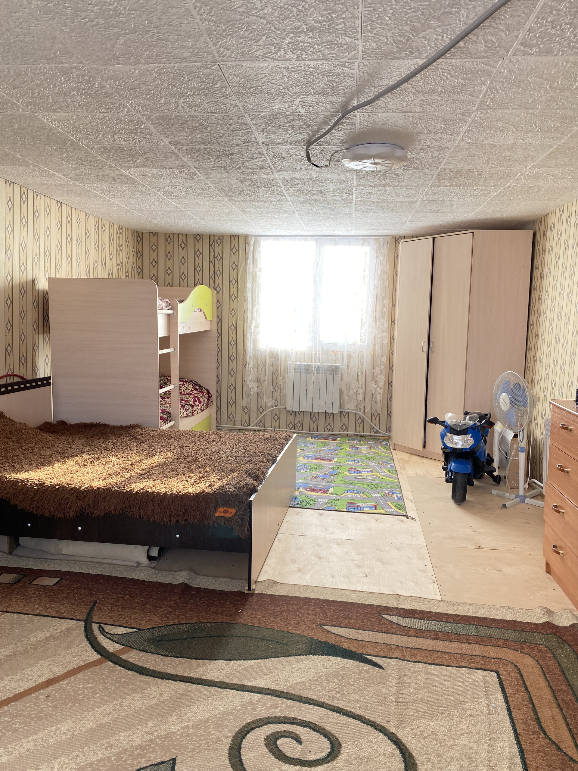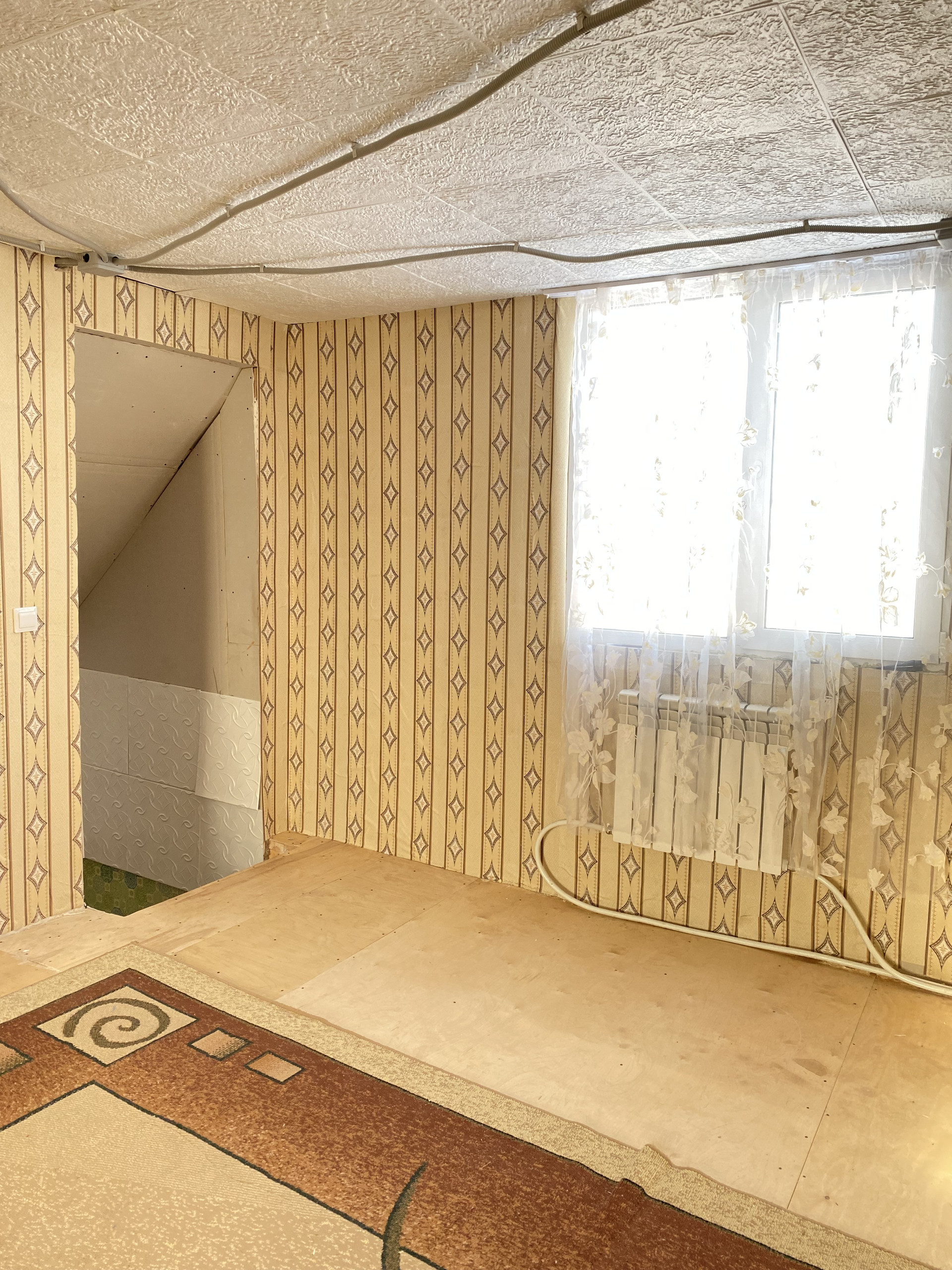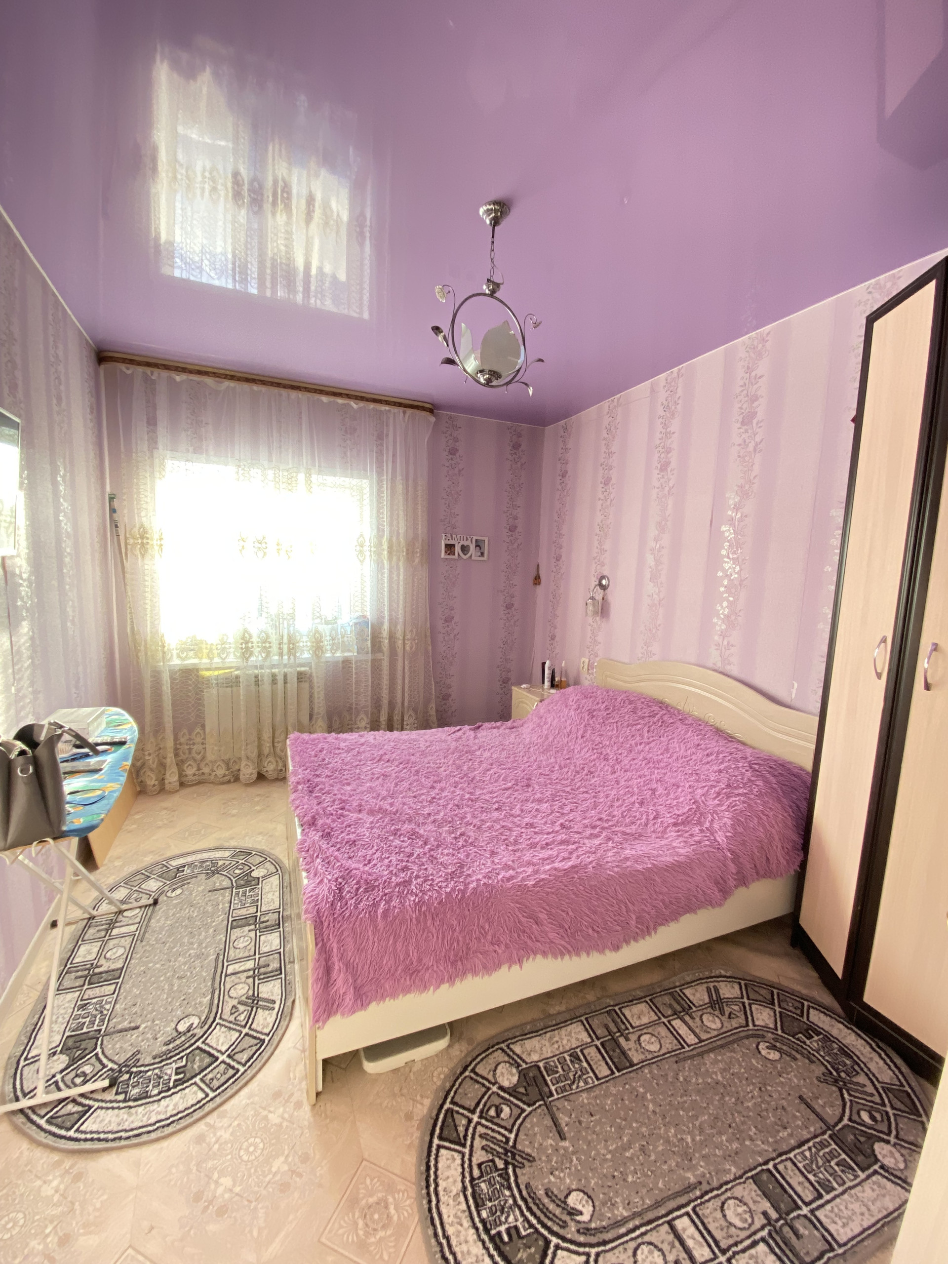- пластиковые окна, входная сейф-дверь, натяжные потолки, на полу во всем доме линолеум.