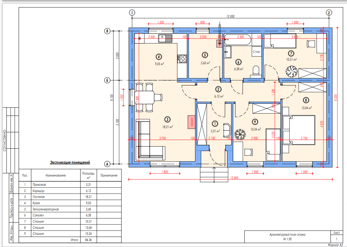 Общая площадь 84 м2
