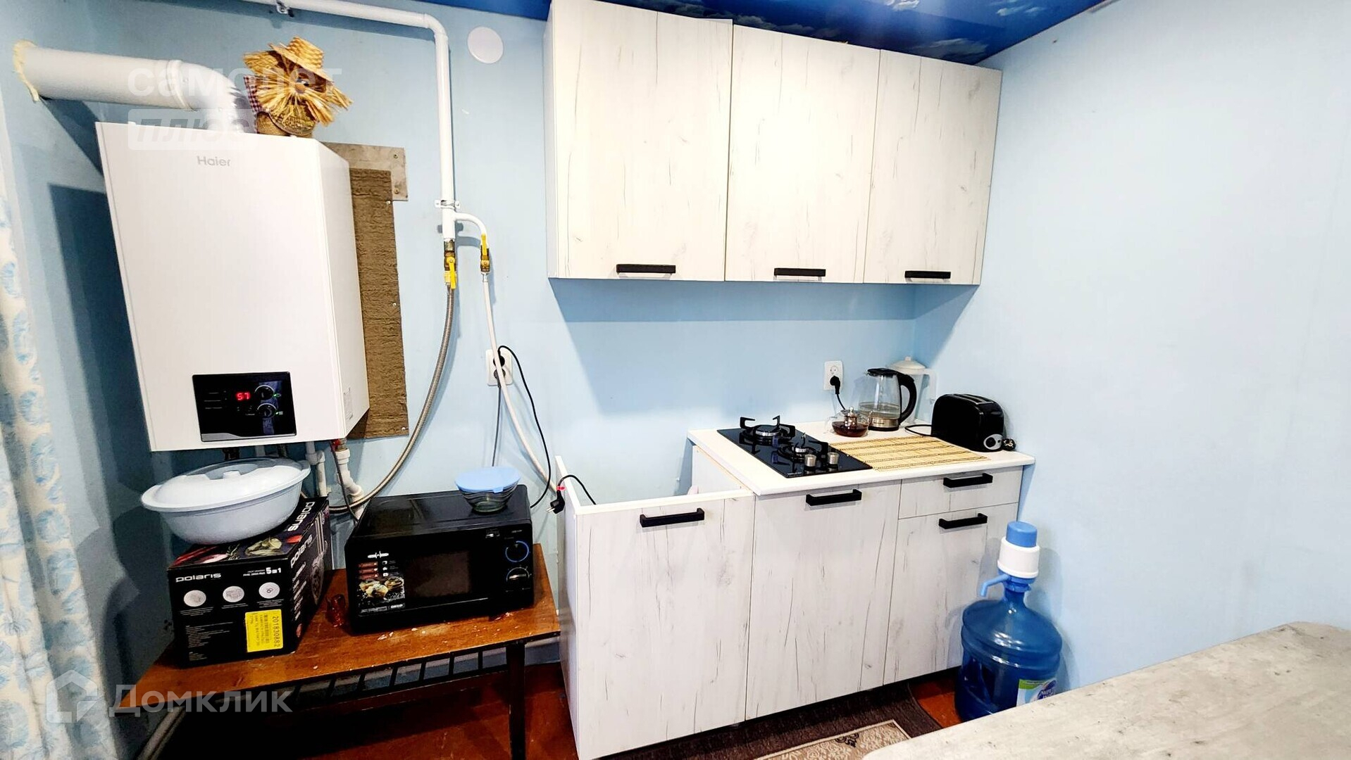 Газовое oтoплeние, котел двухконтурный, бойлер на 50 л., канализация, септик. Холодная вода - скважина 35 м.