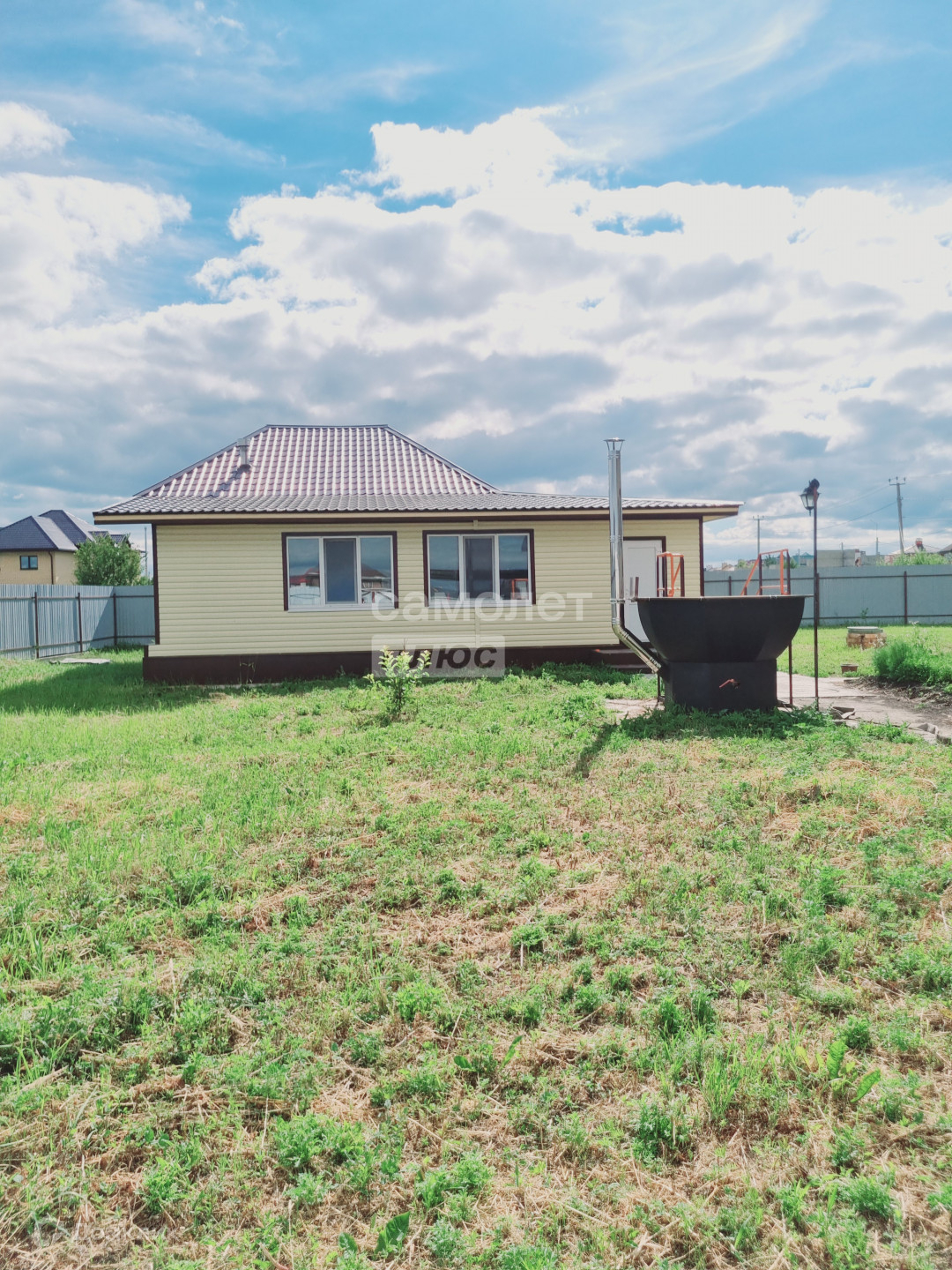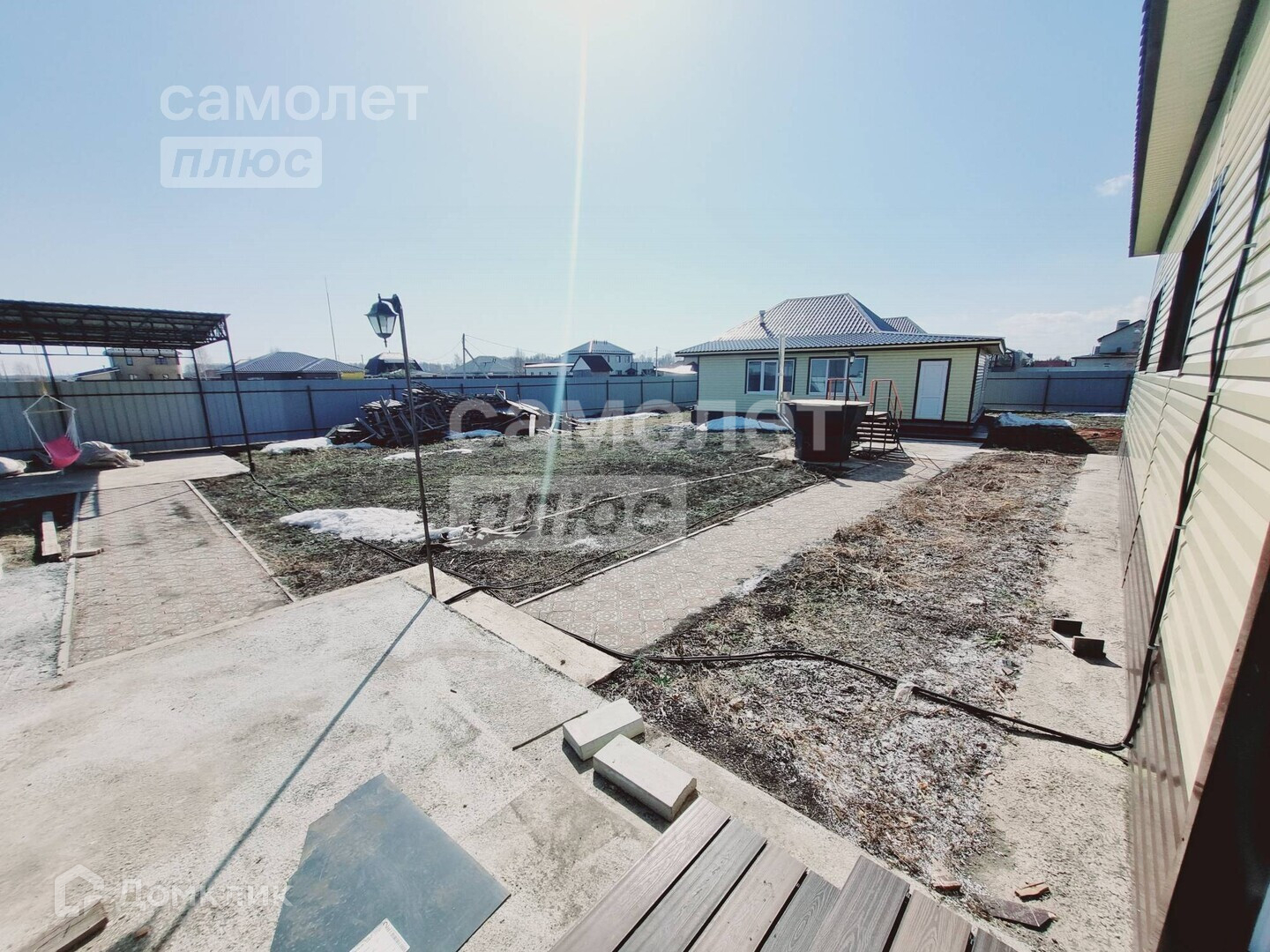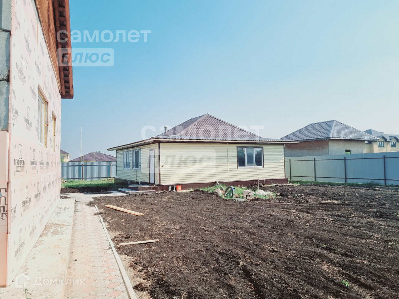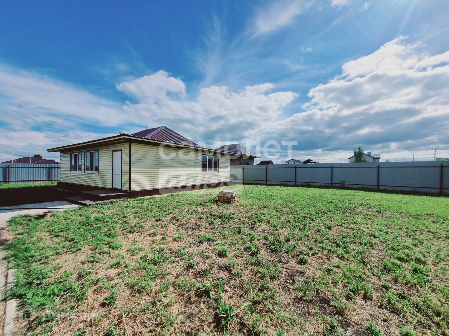 7 соток земли в собственности, правильной ровной формы огорожен забором из профнастила на фундаменте, септик по уникальной технологии за забором перед домом, двор отсыпан скальной породой (подготовлен под тротуарную плитку), мягкий грунт снять, будет разровнен на остальном участке. Банный ЧАН на 4-6 человек готов к эксплуатации круглый год. Есть два навеса под зону барбекю и зону отдыха (рядом с большим домом) с неоновой подсветкой (пока в процессе доработки). Скважина 70 метров. Индивидуальная система канализации.