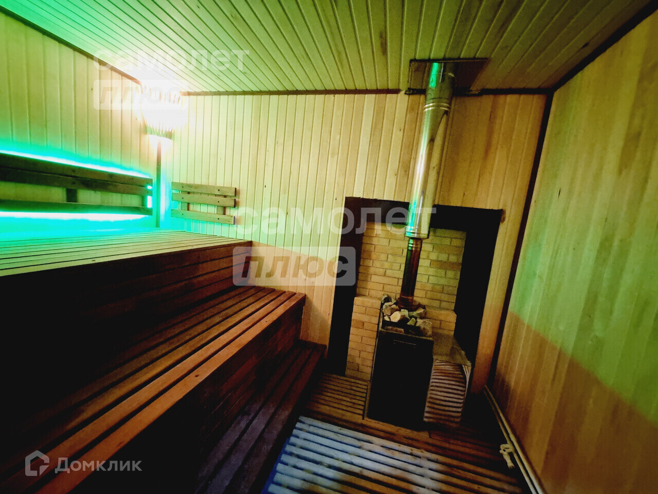В доме установлены пластиковые стеклопакеты и входная группа, межкомнатные двери, натяжные потолки, неоновая подсветка, стены обшиты вагонкой (сосна), установлена принудительная вентиляция.
