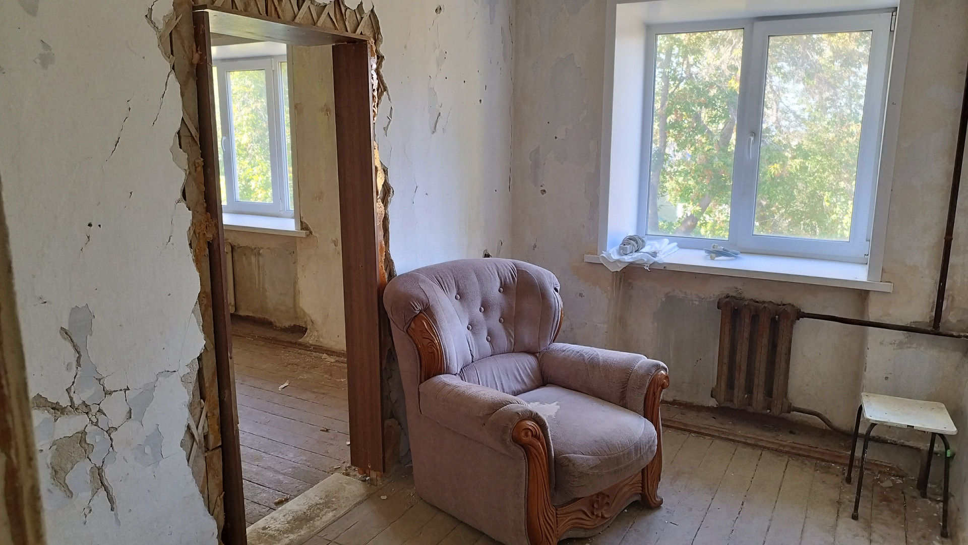 Продается недорого 3-х комнатная квартира без ремонта. Комнаты смежные. Все окна, кроме одного заменены на пластиковые. Дом находится в спокойном, обособленном районе, территория которого благоустроена и ухожена, имеется детская площадка. В качестве подарка к квартире можем безвозмездно передать покупателям садовый участок (4 сотки) рядом с домом.