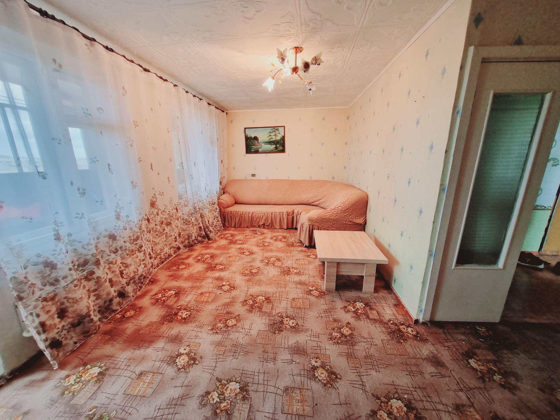 Квартира состоит из трех раздельных комнат, две большие лоджии (6кв.м.) на разные стороны остеклены деревянными рамами. Имеется очень вместительная кладовая, в коридоре есть холл с окном (который можно преобразовать в отдельную комнату).