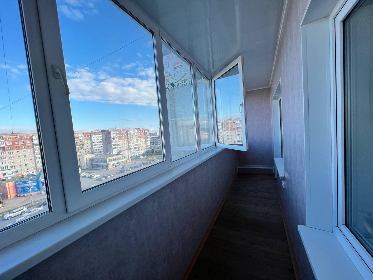 Установлены пластиковые окна, две шестиметровые лоджии остеклены.