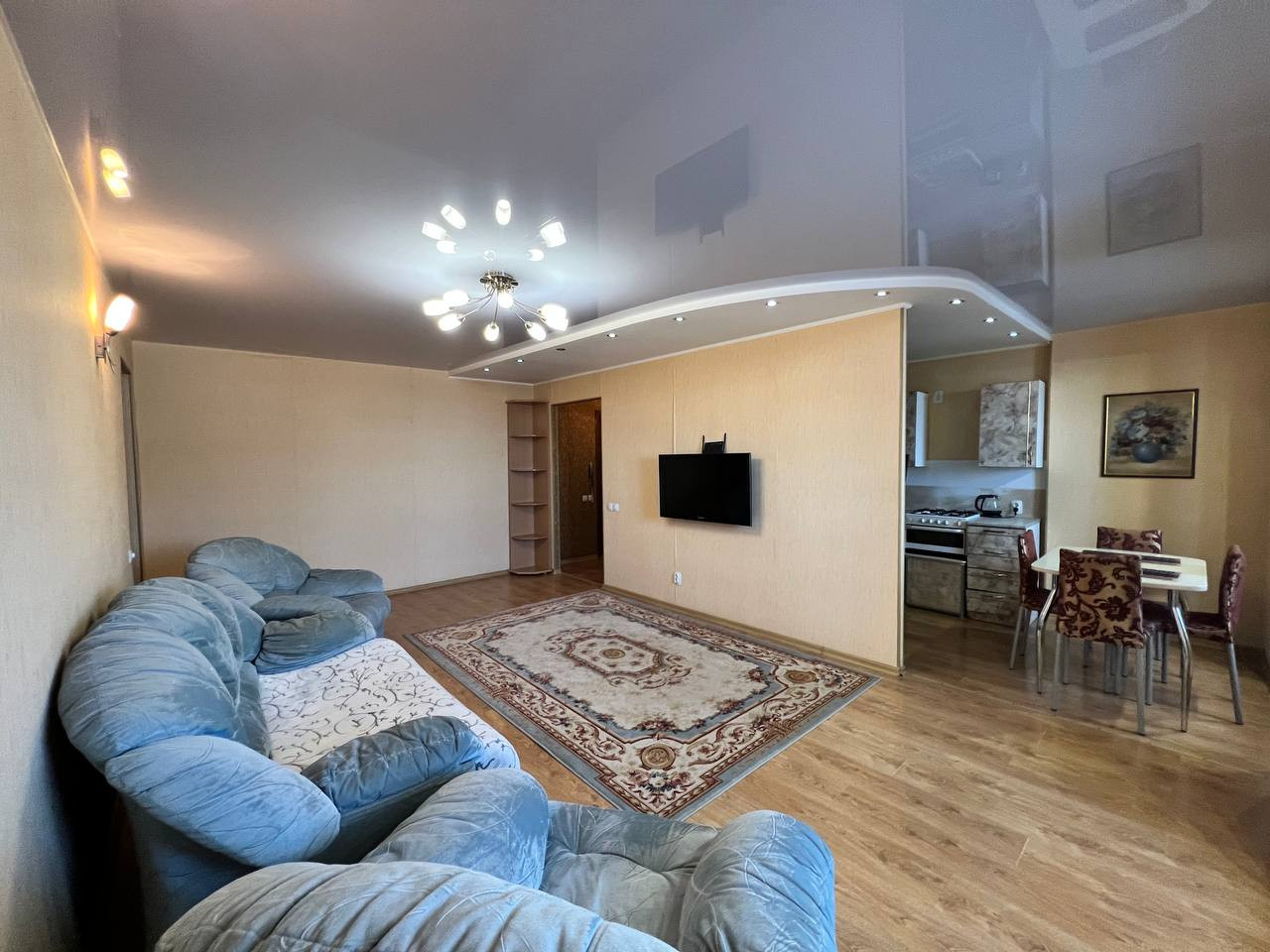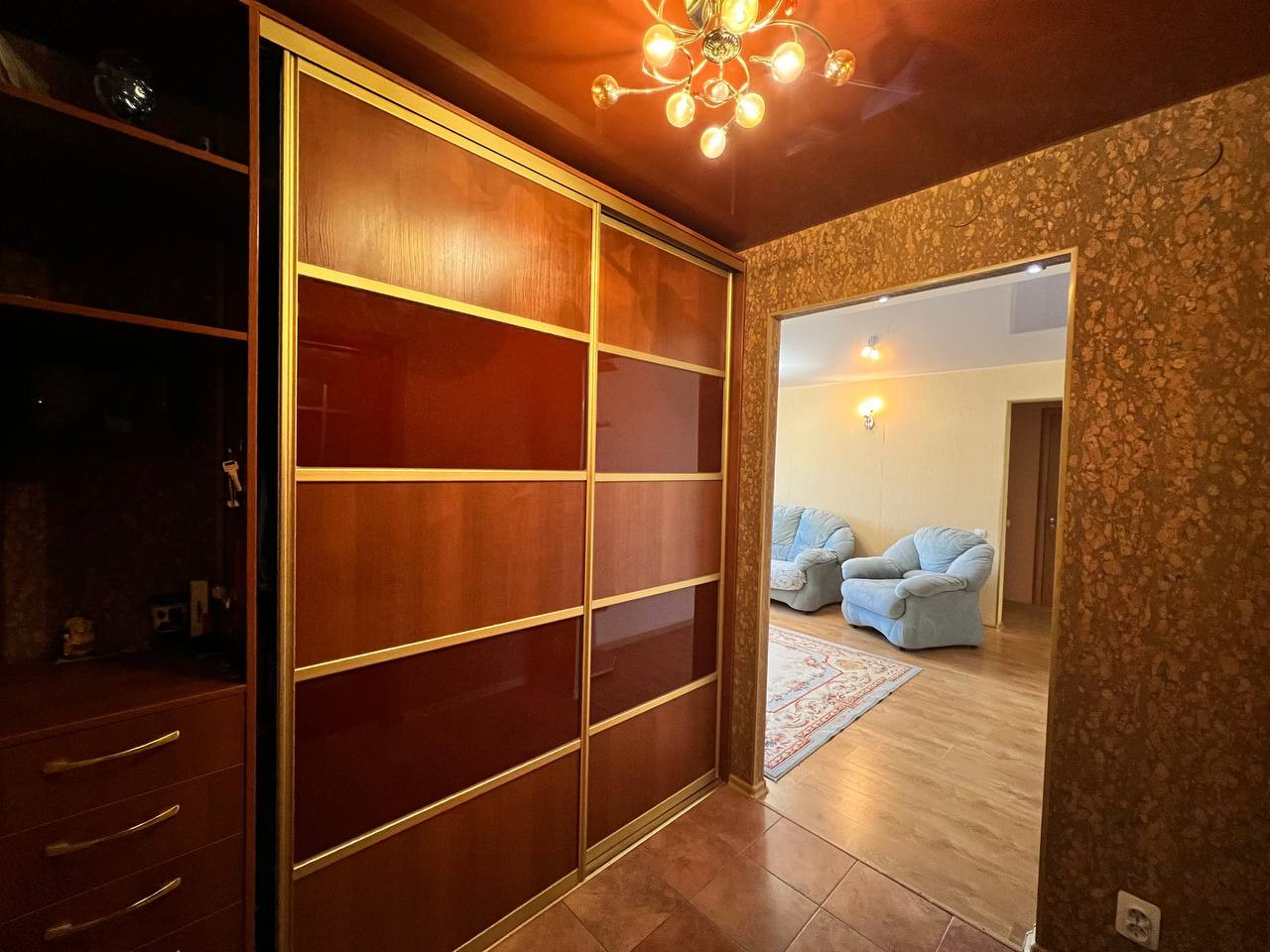 В стоимость квартиры входит: кухонный гарнитур, люстры и светильники, шкаф-купе в коридоре, шкафы в ванной и в туалете.