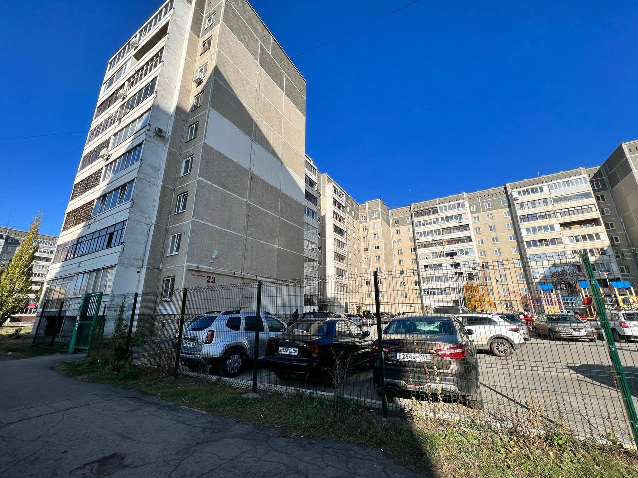 Дом с закрытой территорией. Во дворе дома детская площадка.
