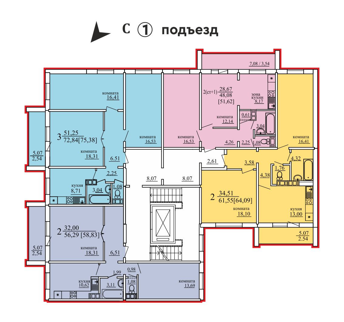 Общая площадь 56.3 м2