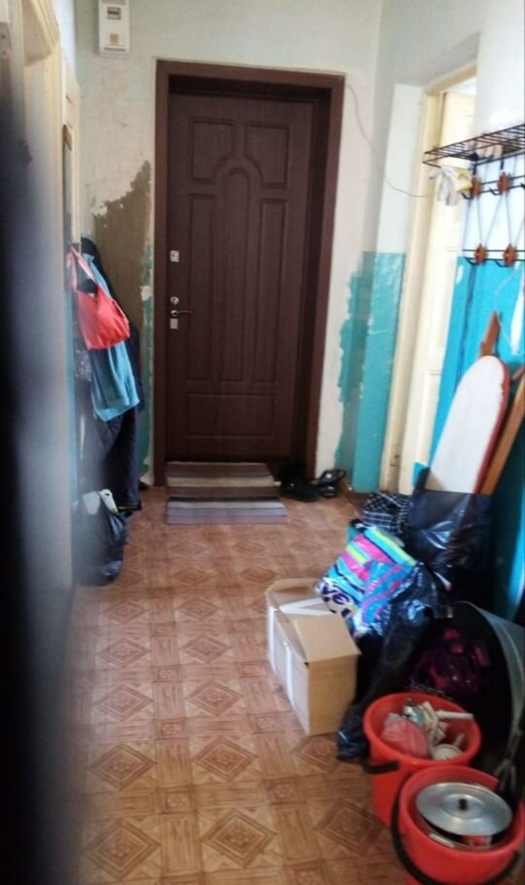 3-комн.не благоустроенная квартира на втором этаже в двухэтажном доме с балконом, пластиковые окна, есть дополнительно маленькая комната с окном и батареей, где можно сделать помывочную, электричество, газа нет, туалет общий на улице, отопление центральное, вода приносная с колонки, канализации нет, газ привозной баллонный или электроплита.