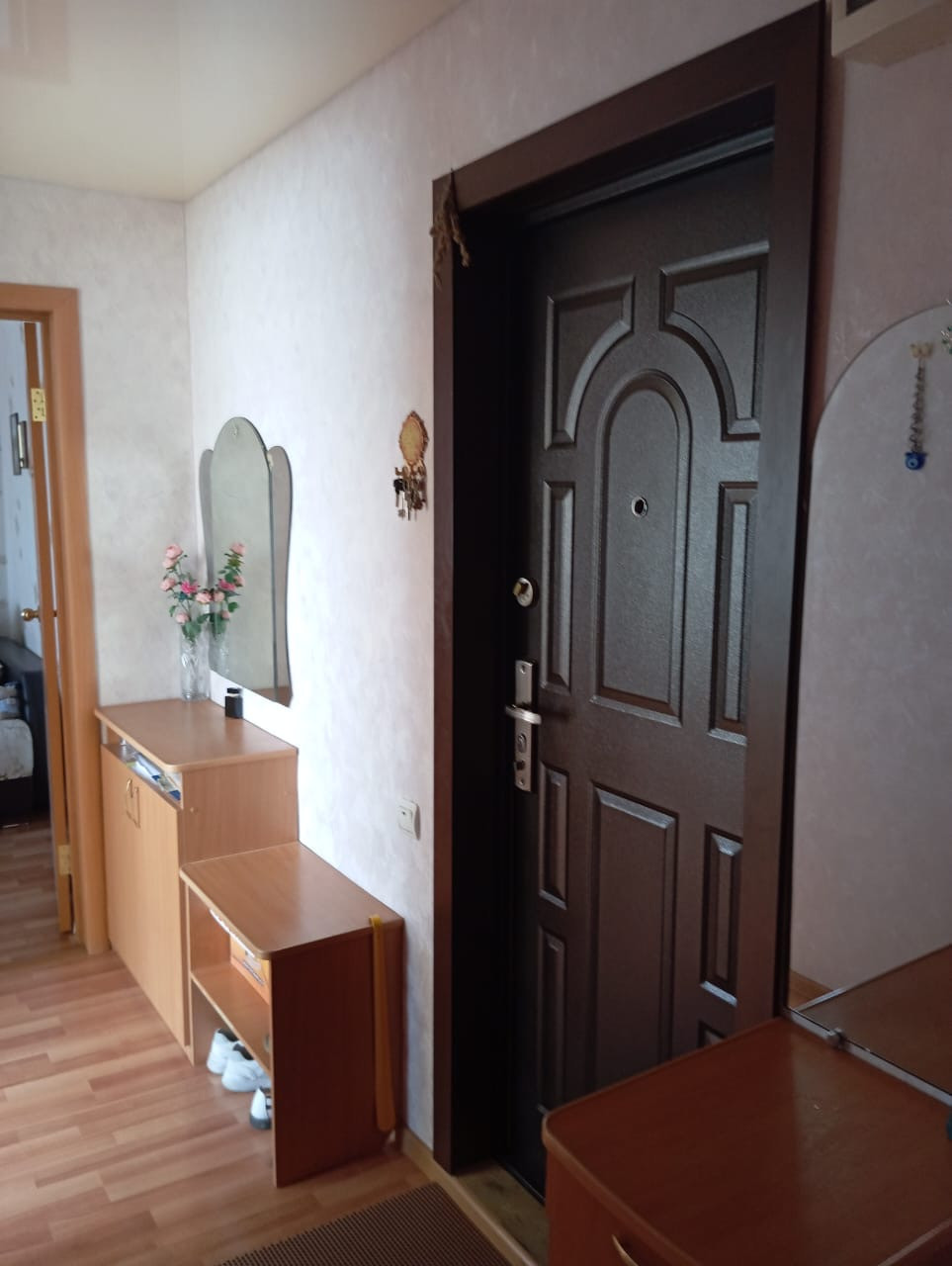 * В квapтиpe устaнoвлены пластиковые oкна, сейф двepь, натяжной потолок, ламинат, остается кухонный гарнитур и прихожая.