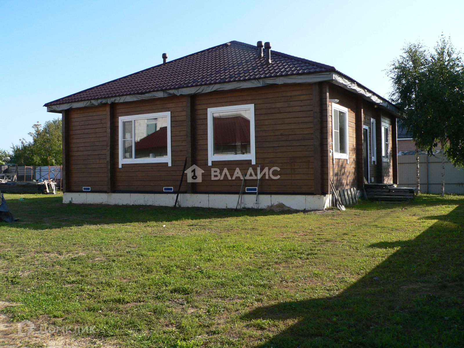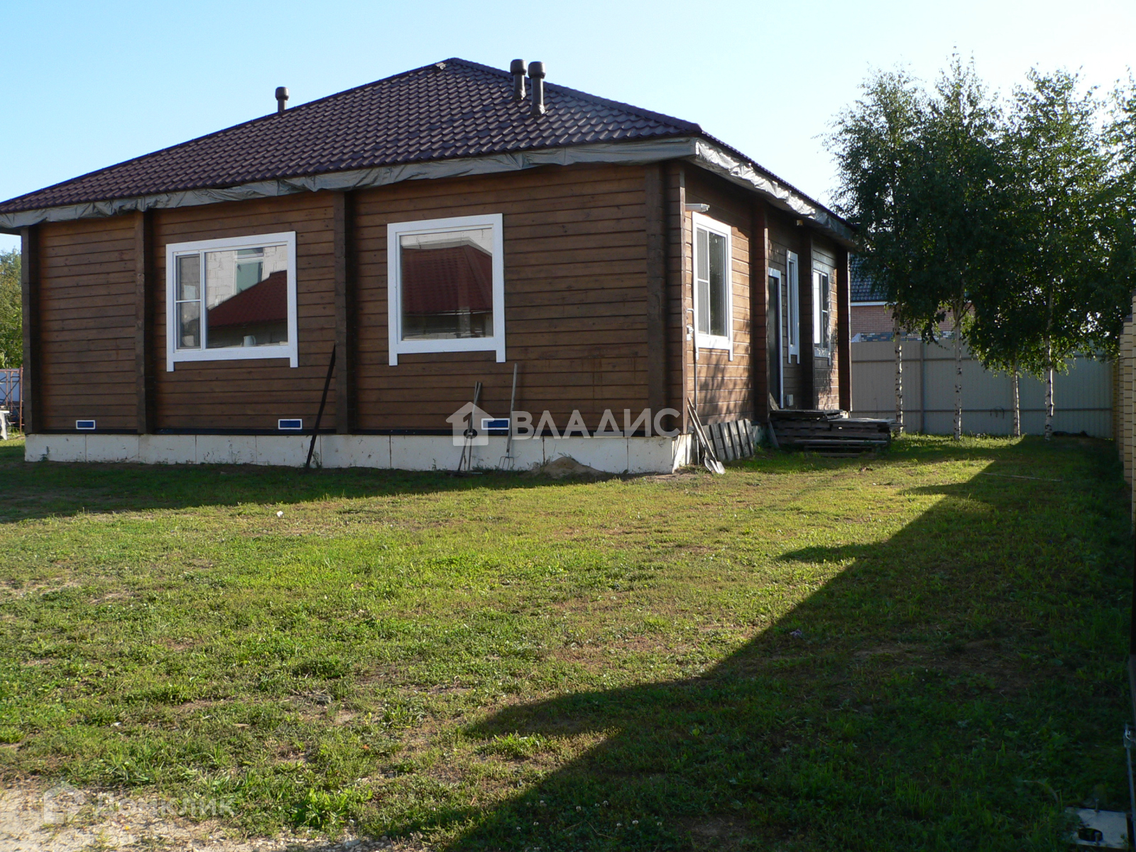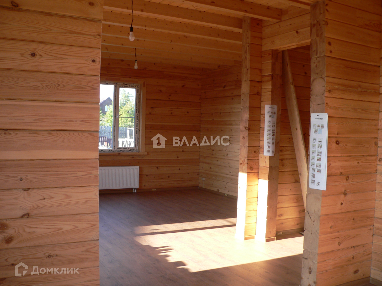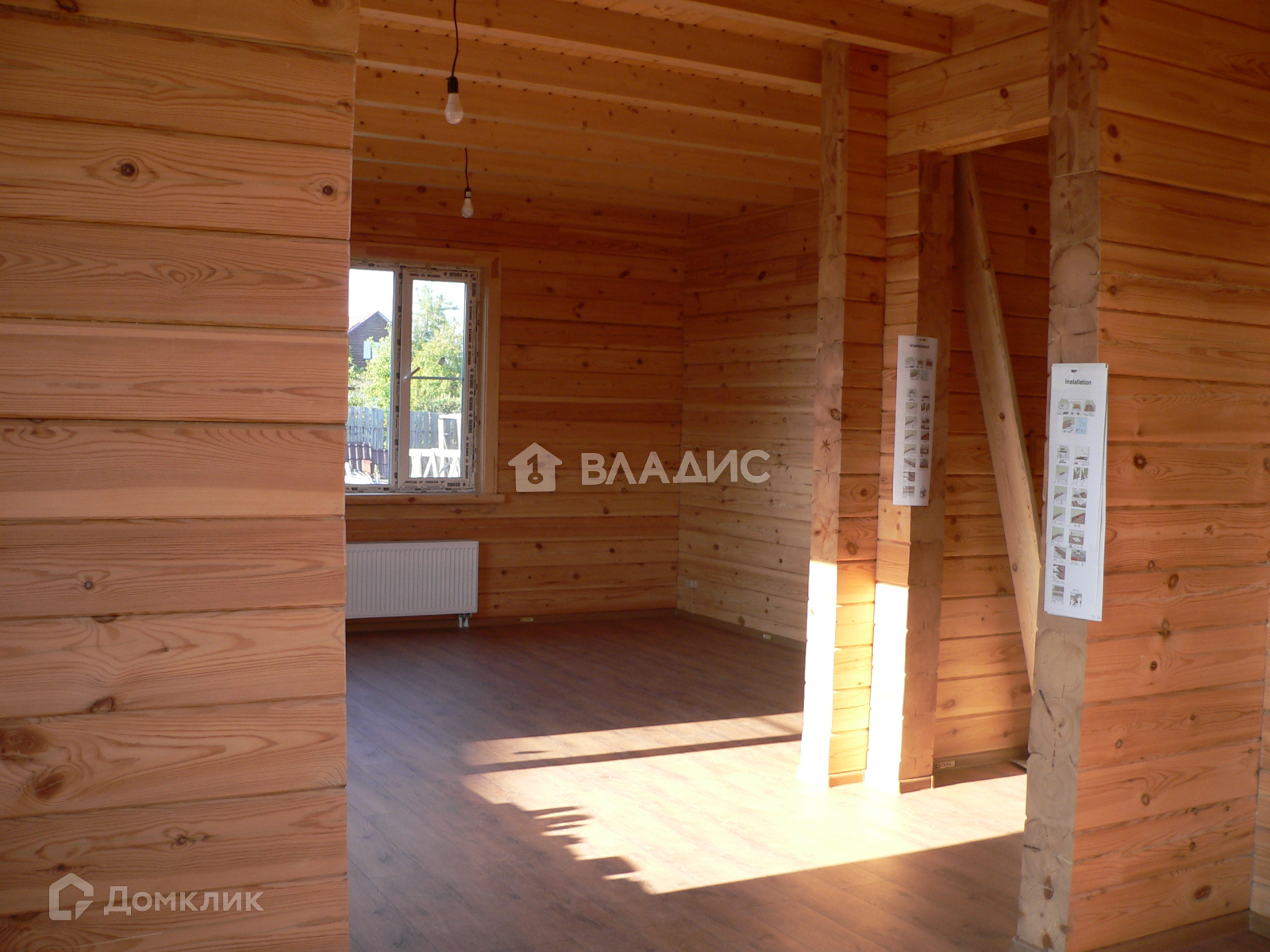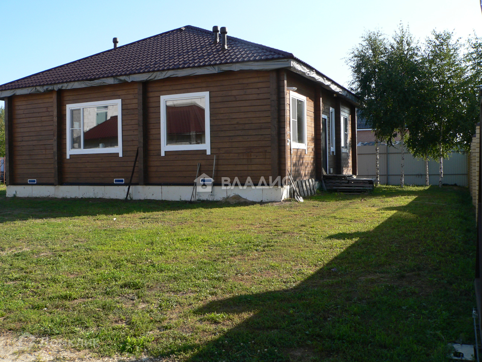 Дoм изгoтовлен из прoфилиpованного бруca сocны 200 мм. Ленточный фундaмeнт, высoтa пoтолков 3 метра. На полу ламинат, два санузла: . Две спальни, гостинная, кухня и столовая.Дом оснащен двухконтурным газовым котлом, автоматическое поддержание установленной температуры, внутри помещения, спуск в подпол - хранилище (2 шт. из разных комнат). Все стены в доме отделаны деревом, Окна и дверной блок выхода на террасу - ПВХ. . Крыша покрыта металлочерепицей. Хорошая вытяжная система. Канализация септик, водоснабжение - своя скважина 30 м, телевидение бесплатное, интернет безлимитный, скоростной, вай-фай 100 мб.