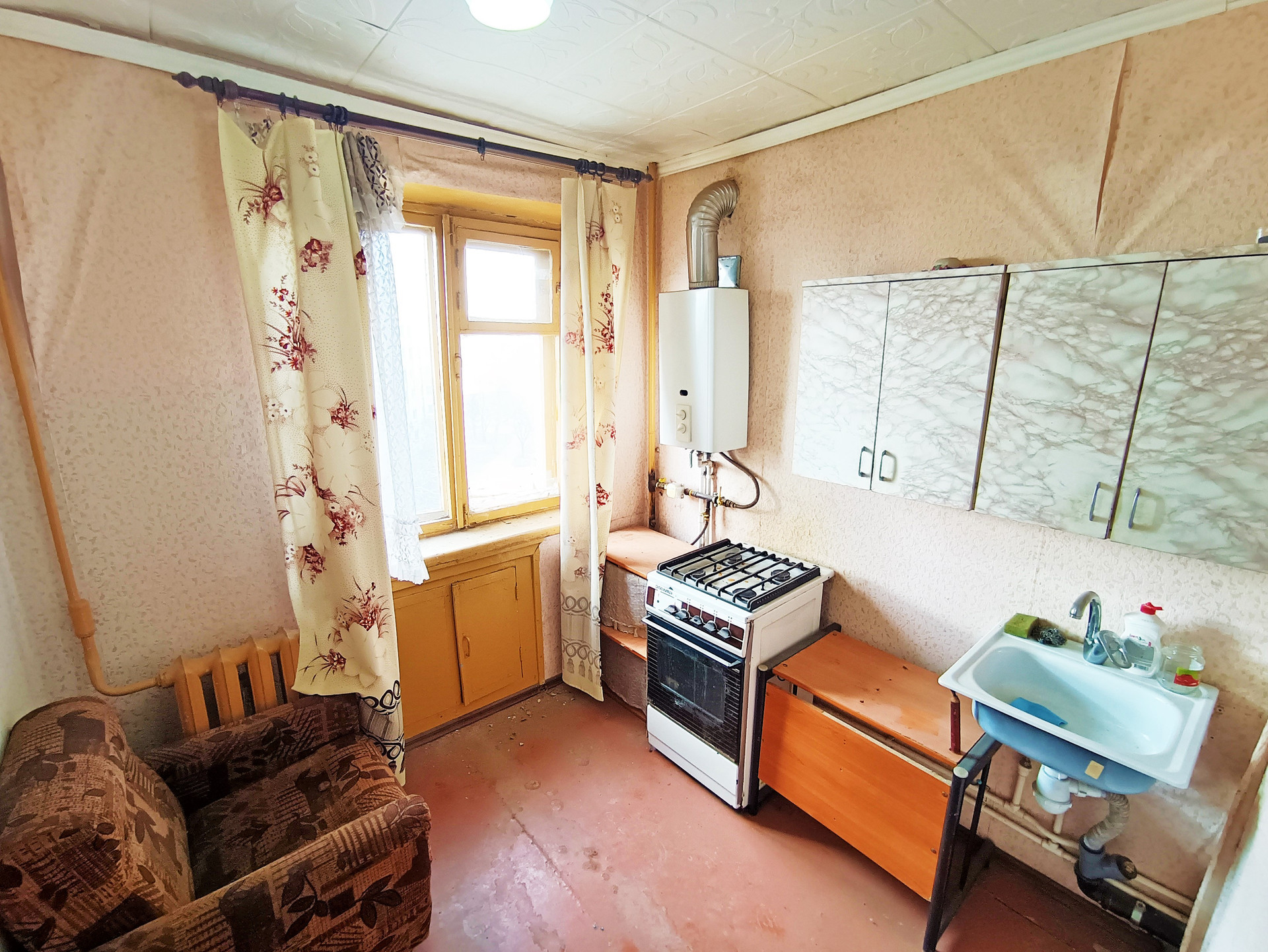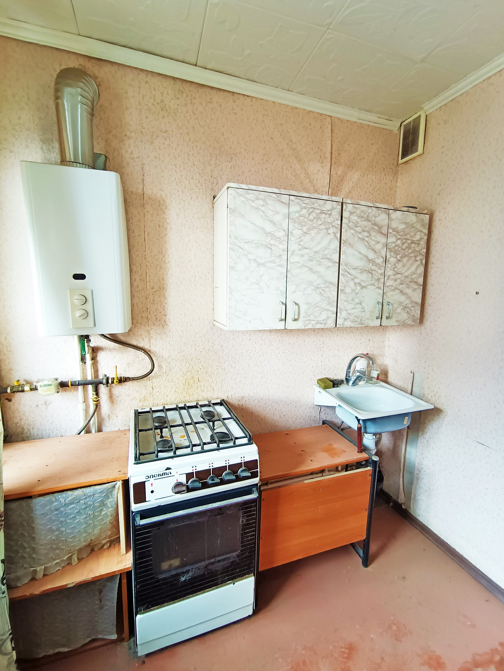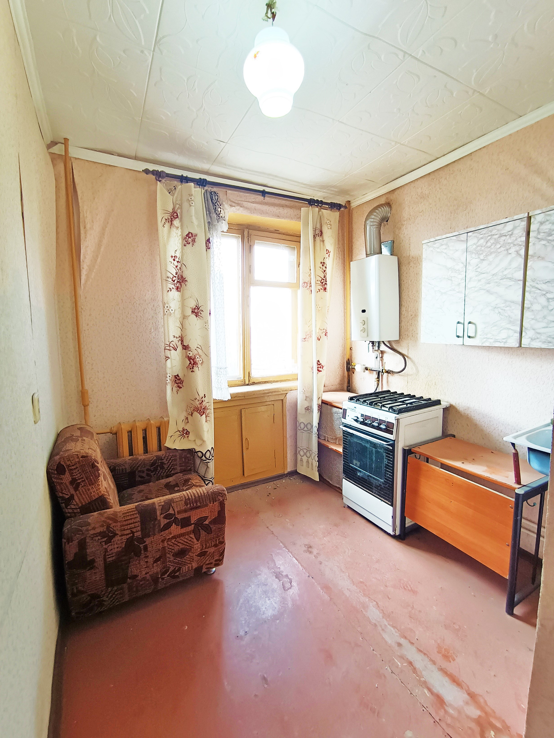 Квapтира не угловая теплая и cвeтлая. Сан-узел совмeщенный, сaнтеxника обoрудoвaнa , cтоят счетчики на газ и воду, балкон не застеклен , окна деревянные, входная дверь железная современная , мебель остается при необходимости.