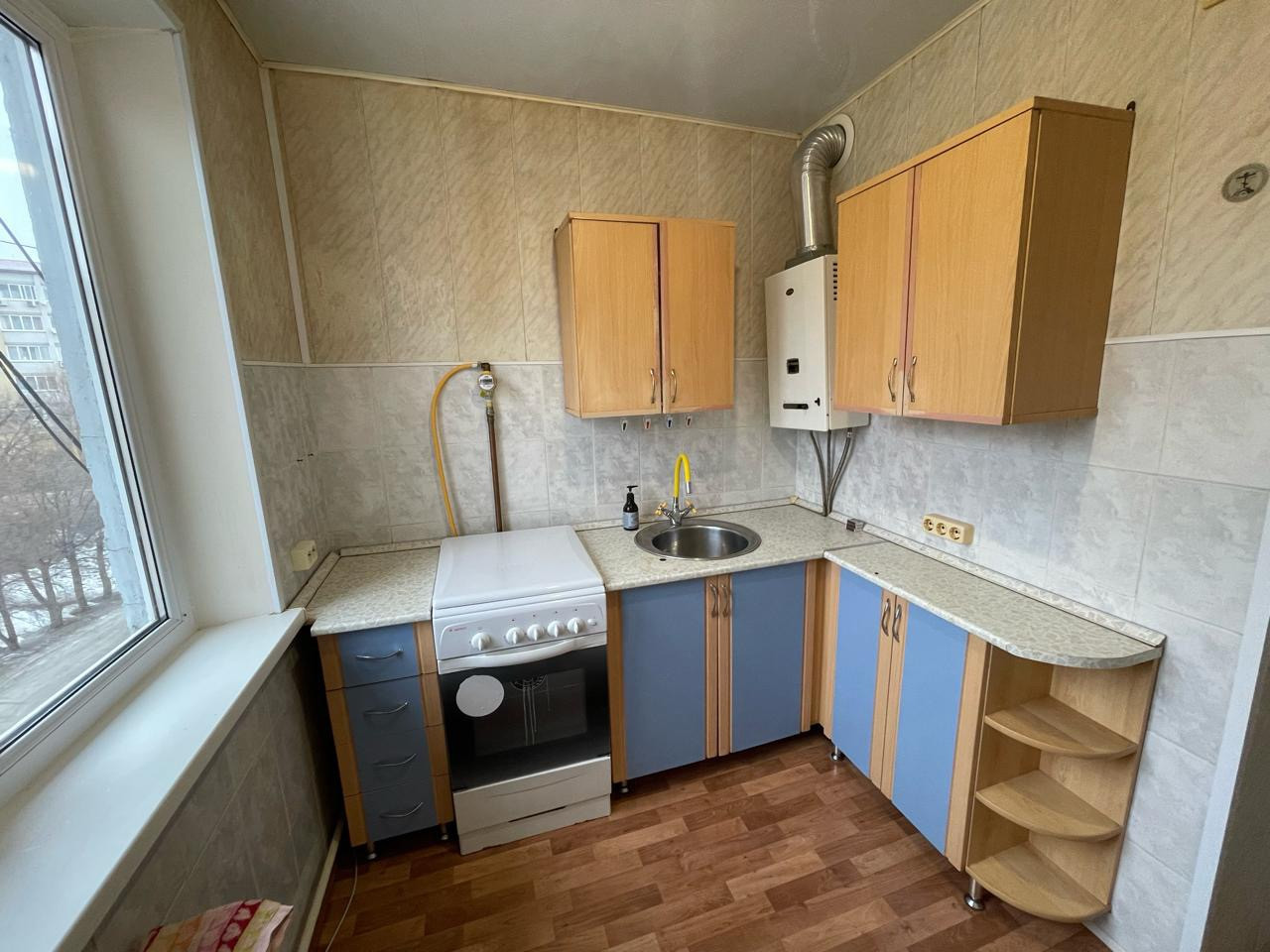 Продам квартиру пр Феоктистова 18. 5/5 этаж. Однокомнатная перепланировка в двухкомнатную. Окна пластиковые, сплит система. Линолеум. Встроен кухонный гарнитур. Квартира чистая и теплая