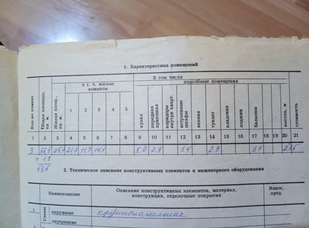 Общая площадь 59.5 м2