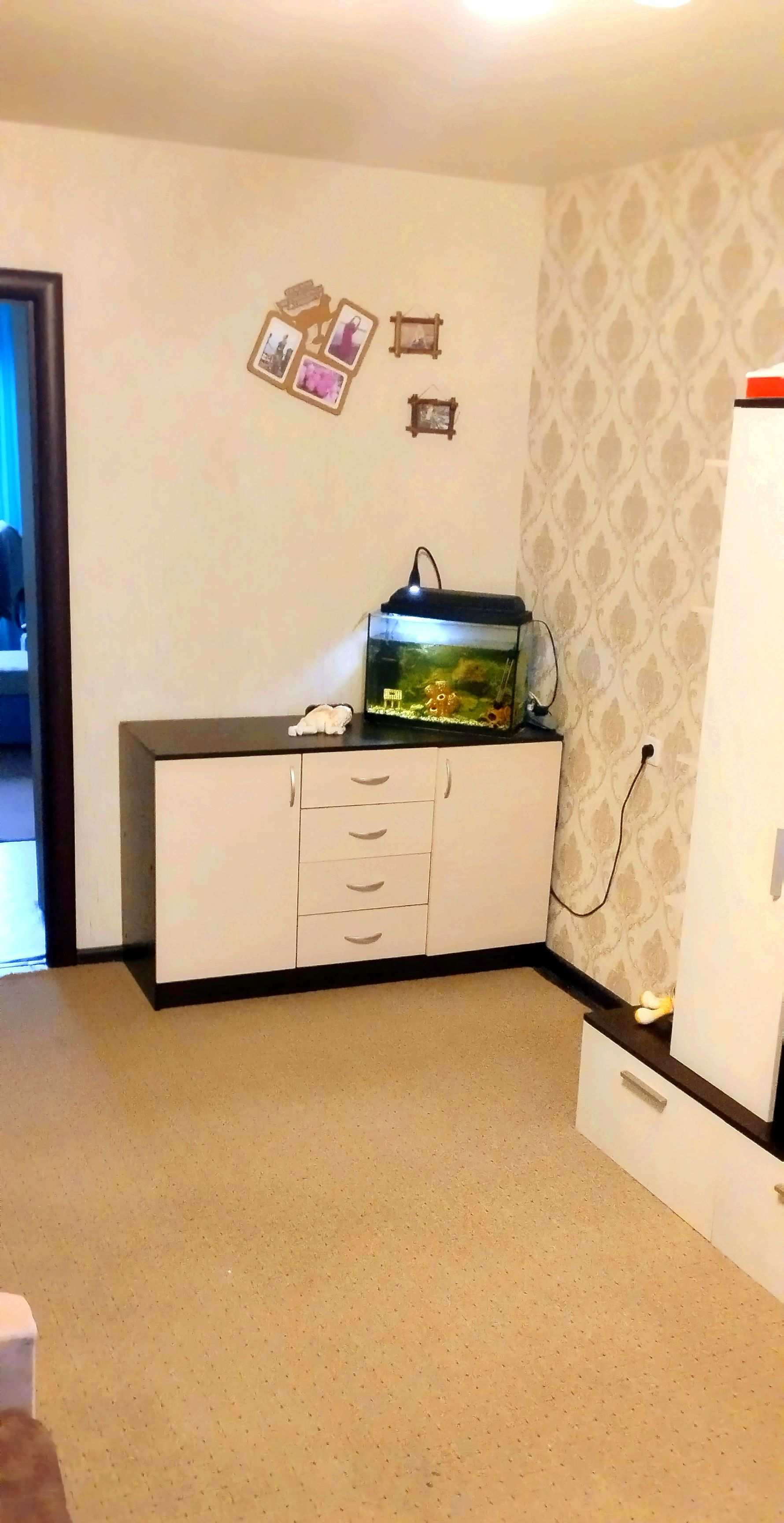 Продаю двухкомнатную квартиру на третьем этаже. Капитальный ремонт ванной комнаты и сан. узла был проведен год назад с полной заменой труб, стоков, стояков и сантехники. Балкон полностью остеклен, внутри обложен пластиковыми панелями. Все окна заменены на качественные пластиковые. В зале и спальне натяжной потолок. Один вид линолеума по всей квартире. В спальне остаётся зеркальный встроенный шкаф- купе. В зале остается стенка и диван. Встроенный кухонный уголок с вытяжкой и газовой плитой остается. Квартира расположена в центре дома,поэтому зимой очень тепло,приходится открывать окна. Два детских сада за домом,школа в 5 минутах,каток. Остановка общественного транспорта в 2 х минутах.Пляж 3 минуты ходьбы. Все магазины в пешей доступности. Во дворе есть детская площадка. Парковка для автомобиля во дворе и за домом. Продажу не планировали,покупку данной квартиры и ее ремонт делали для себя с целью дальнейшего проживания.