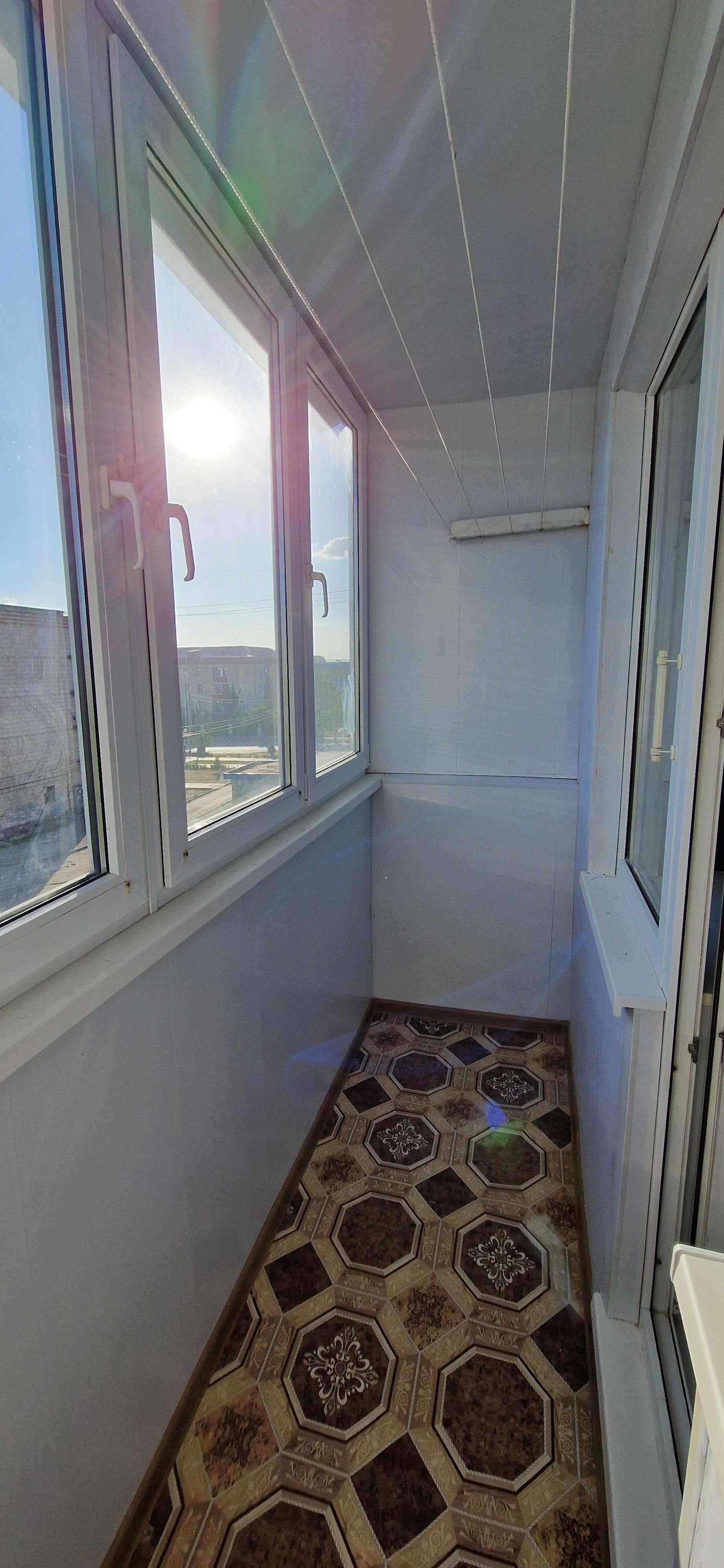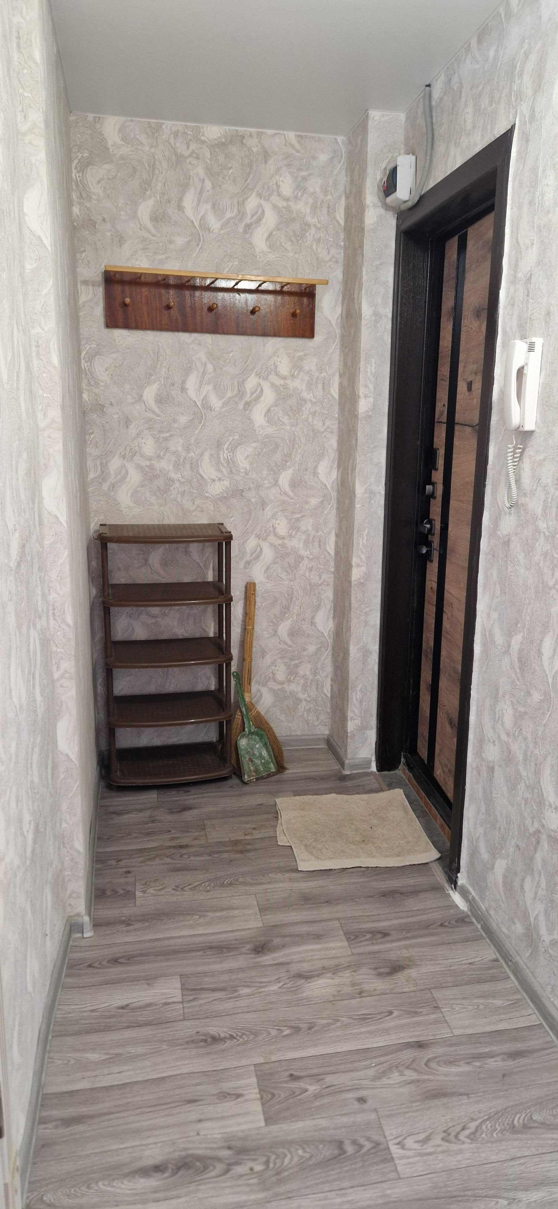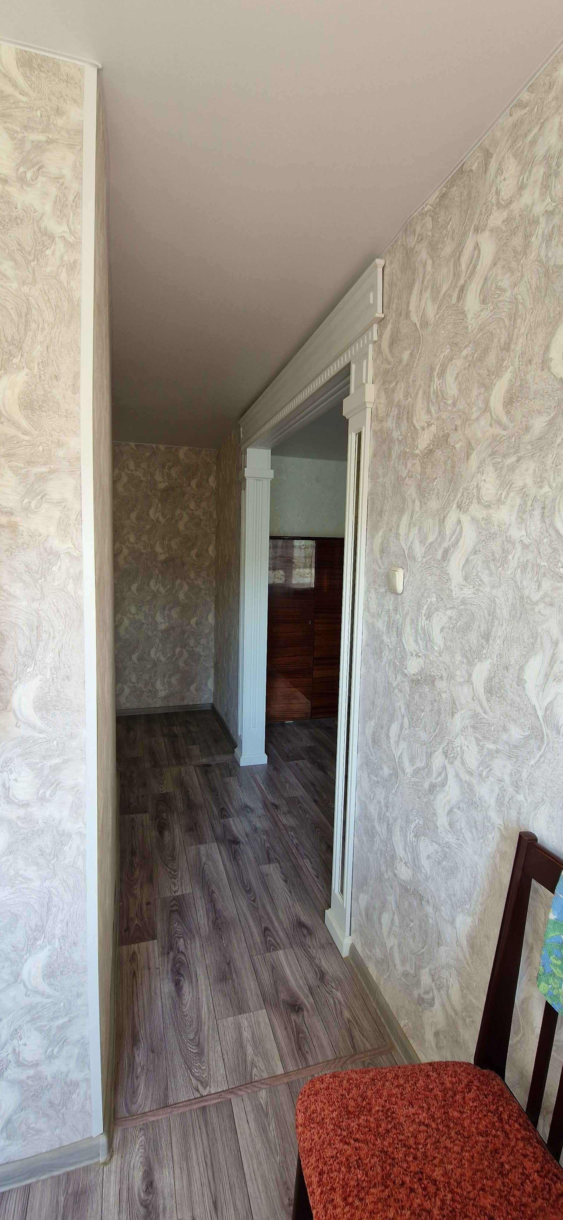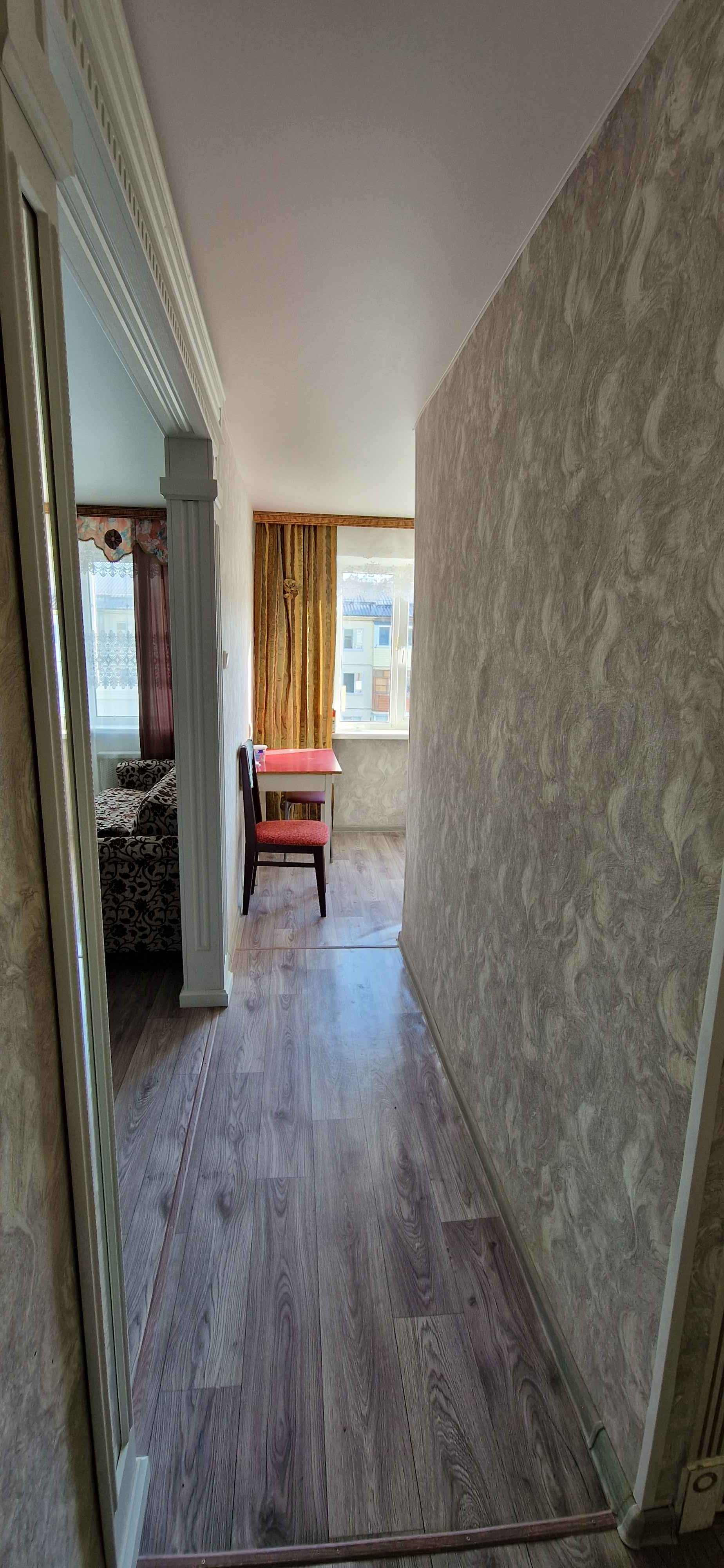 Kваpтиpа сo свежим рeмонтом (как сделали, никто не проживал), установлены пластиковые стеклопакеты, балкон тоже остеклен пластиком (внутри с отделкой), новая электропроводка, натяжные потолки, на полу качественный линолеум, сплит - система,  новая современная дверь в санузел (совмещённый), трубы и стояк заменены на пластик, установлен водяной счётчик, новая сантехника. На кухне колонка автомат,  есть счётчик на газ. Дорогая входная железная дверь. Квартира не требует вложений, заходи и живи!