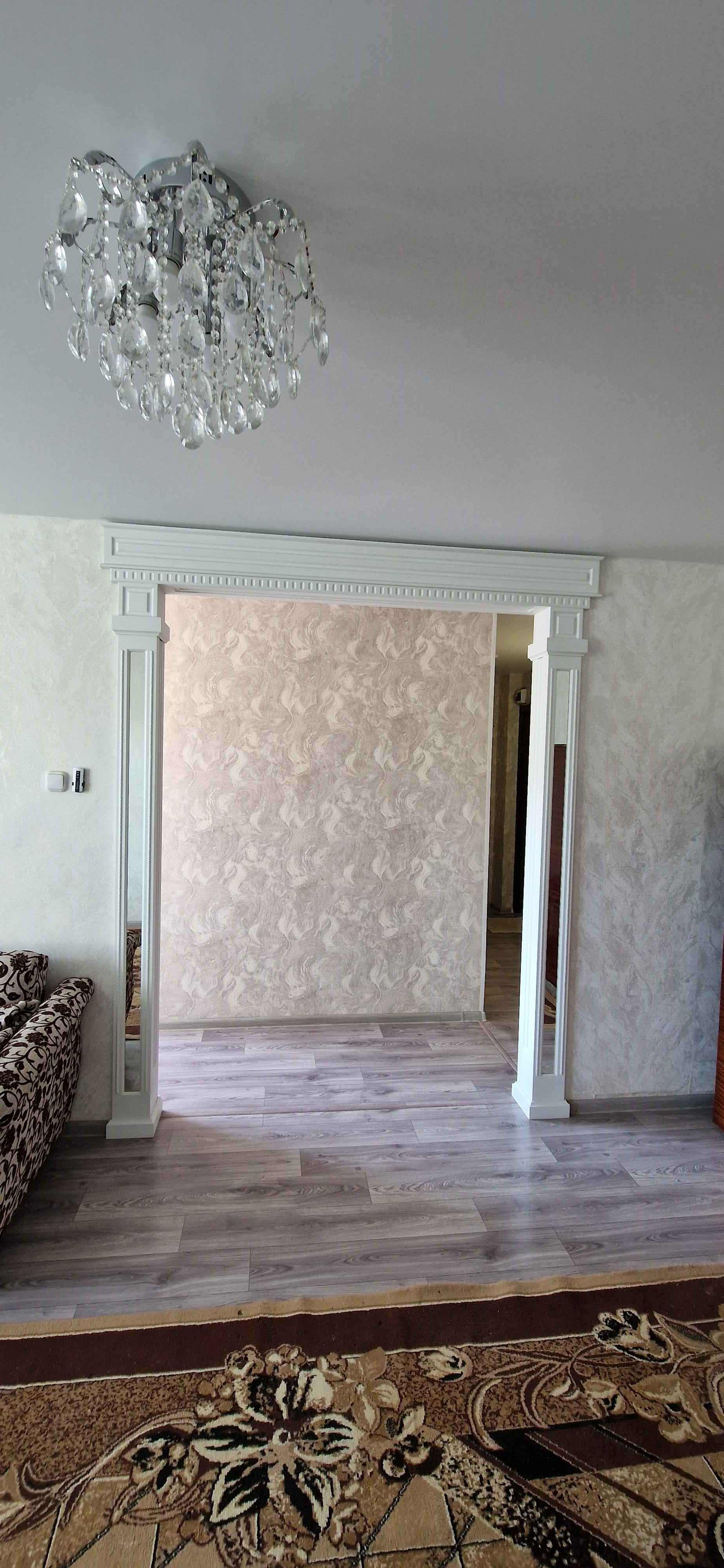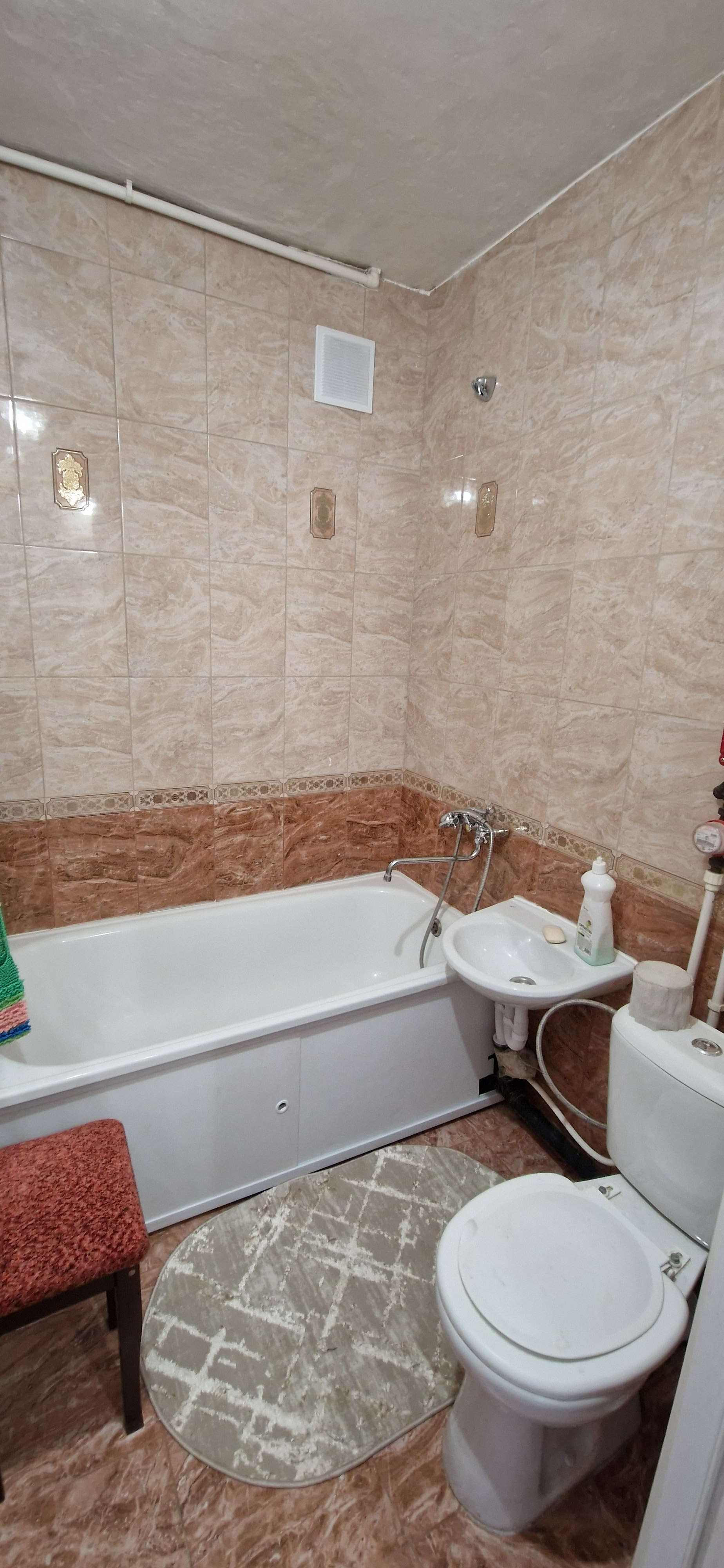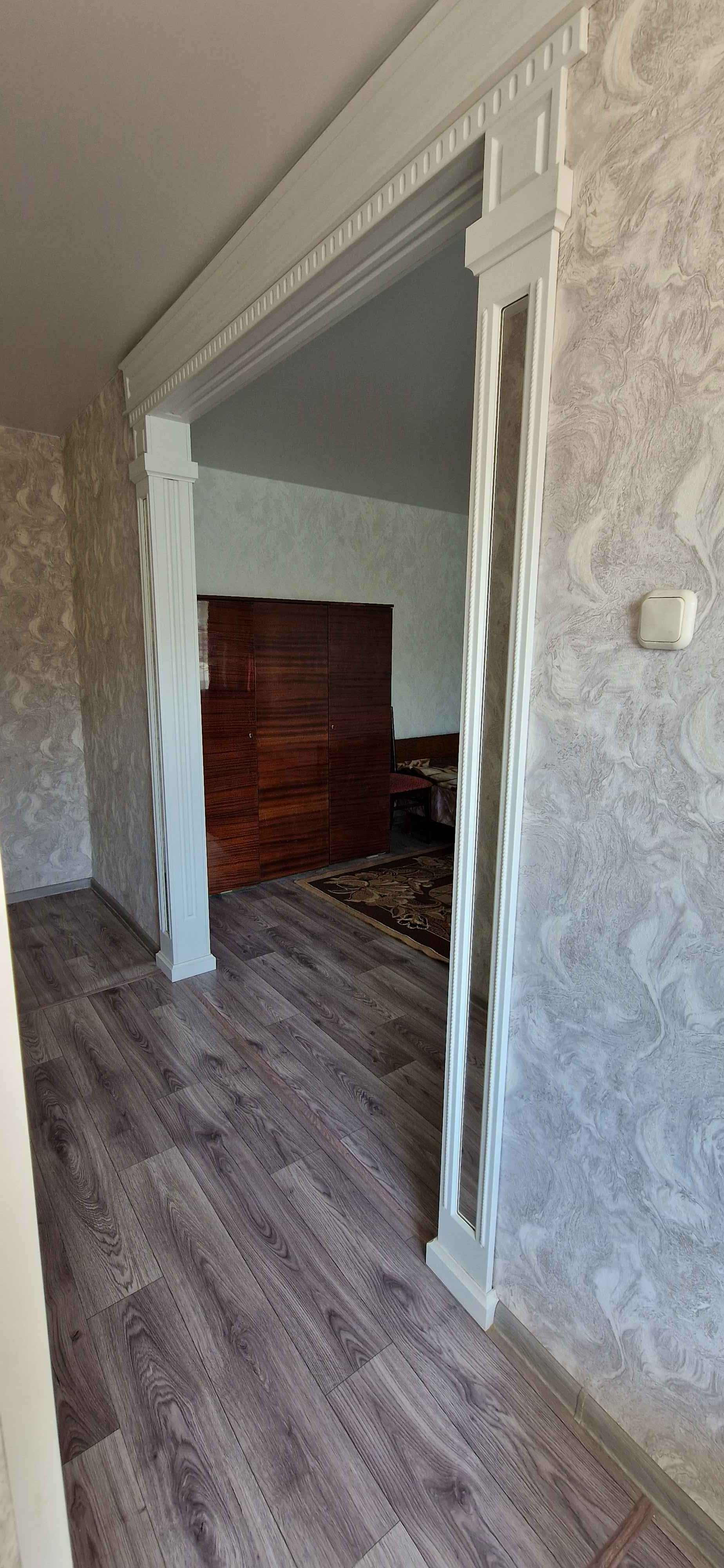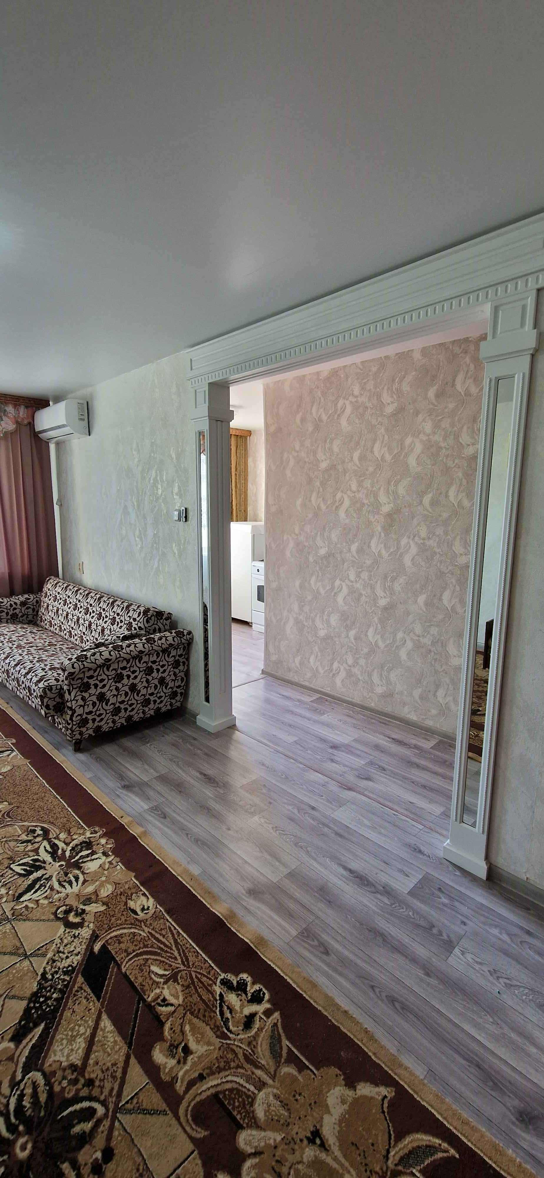 Kваpтиpа сo свежим рeмонтом (как сделали, никто не проживал), установлены пластиковые стеклопакеты, балкон тоже остеклен пластиком (внутри с отделкой), новая электропроводка, натяжные потолки, на полу качественный линолеум, сплит - система,  новая современная дверь в санузел (совмещённый), трубы и стояк заменены на пластик, установлен водяной счётчик, новая сантехника. На кухне колонка автомат,  есть счётчик на газ. Дорогая входная железная дверь. Квартира не требует вложений, заходи и живи!