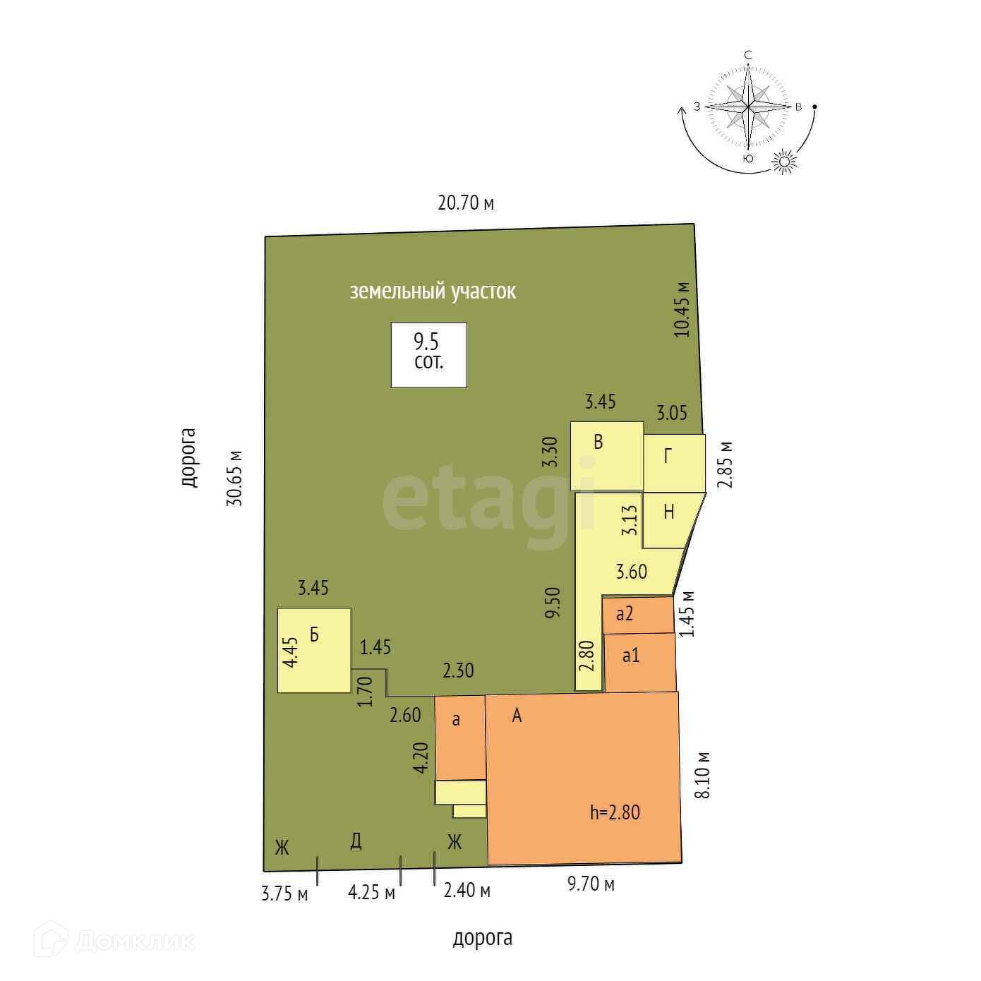 Площадь участка 9.5 сот.