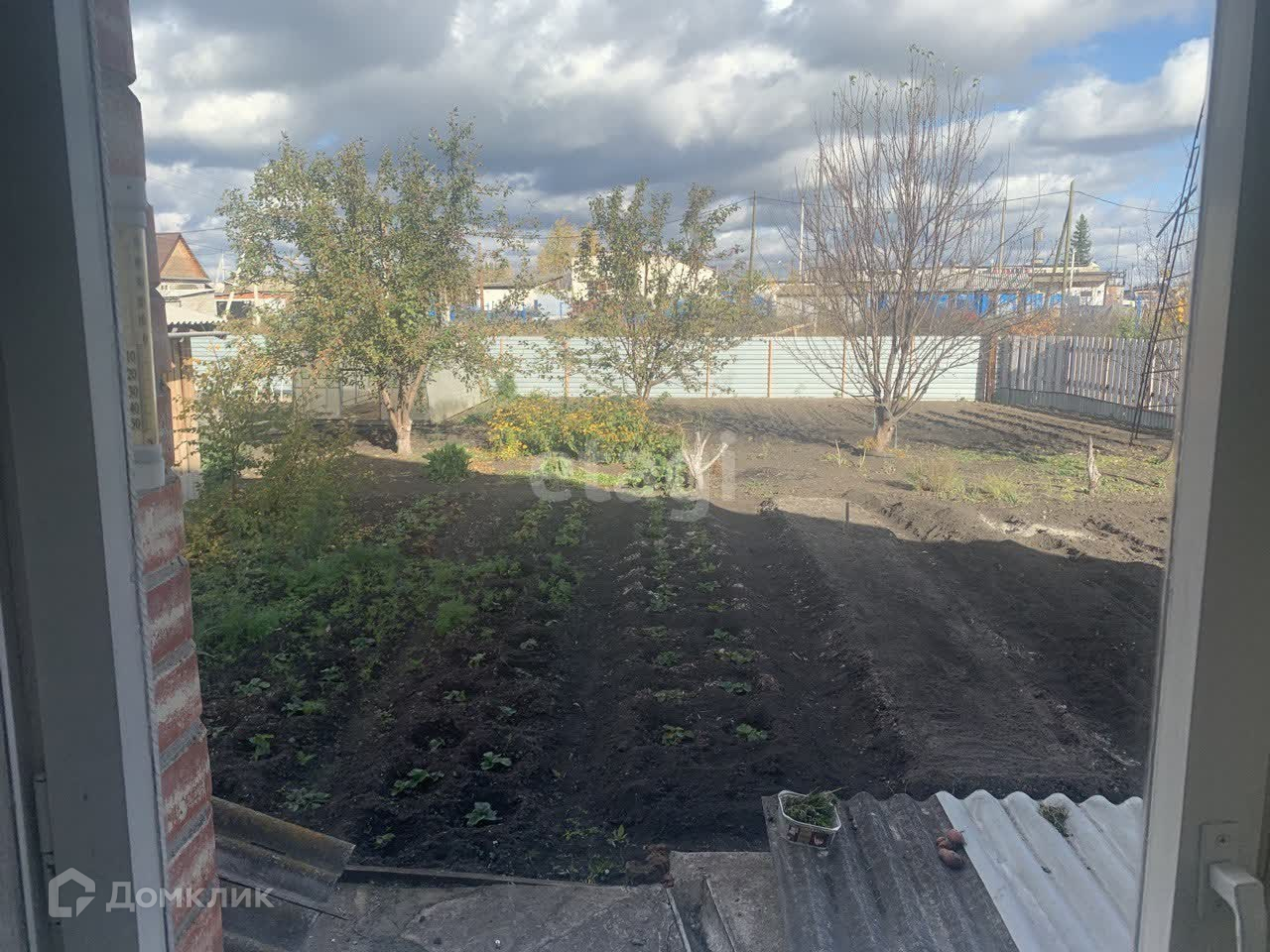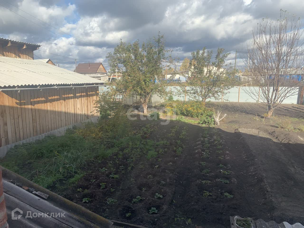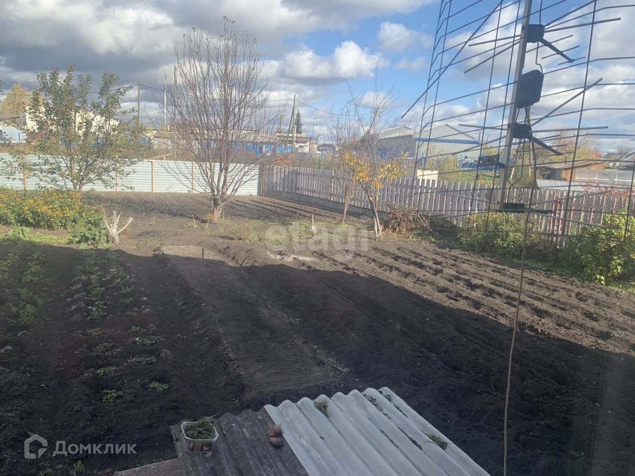 Участок разработан, ухожен. Растут яблони, кусты крыжовника, смородина, клубника.