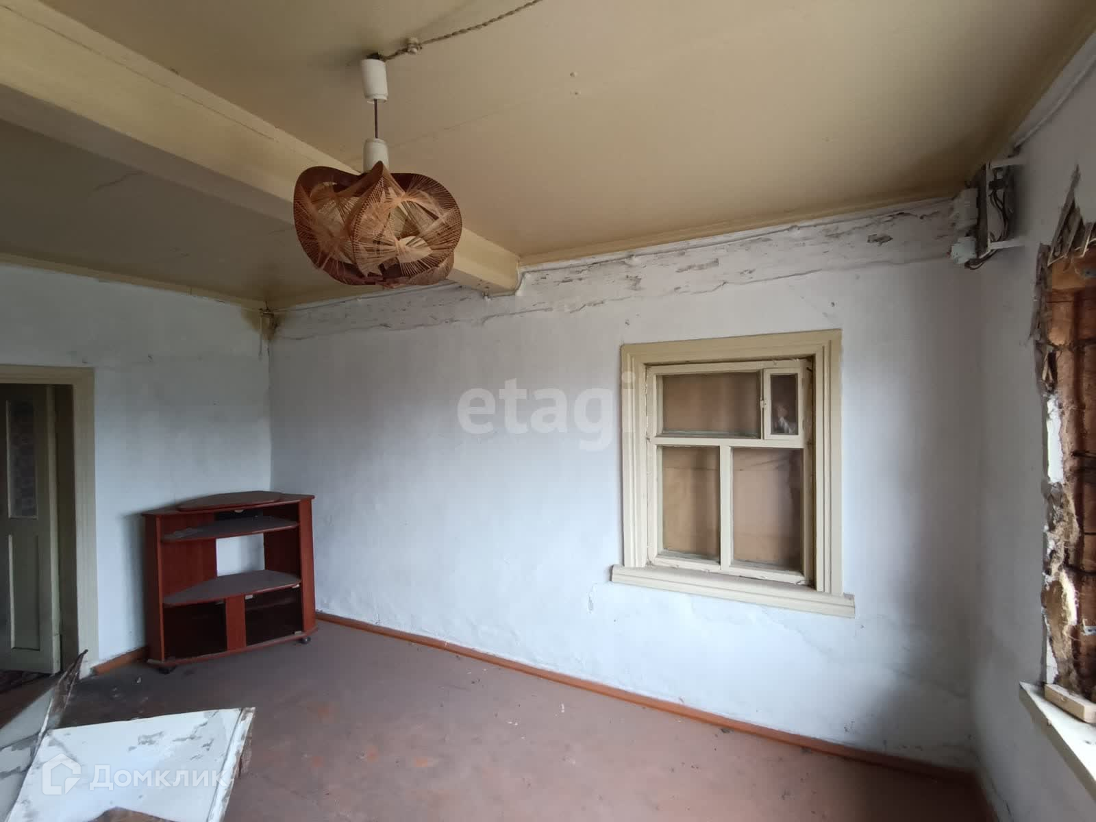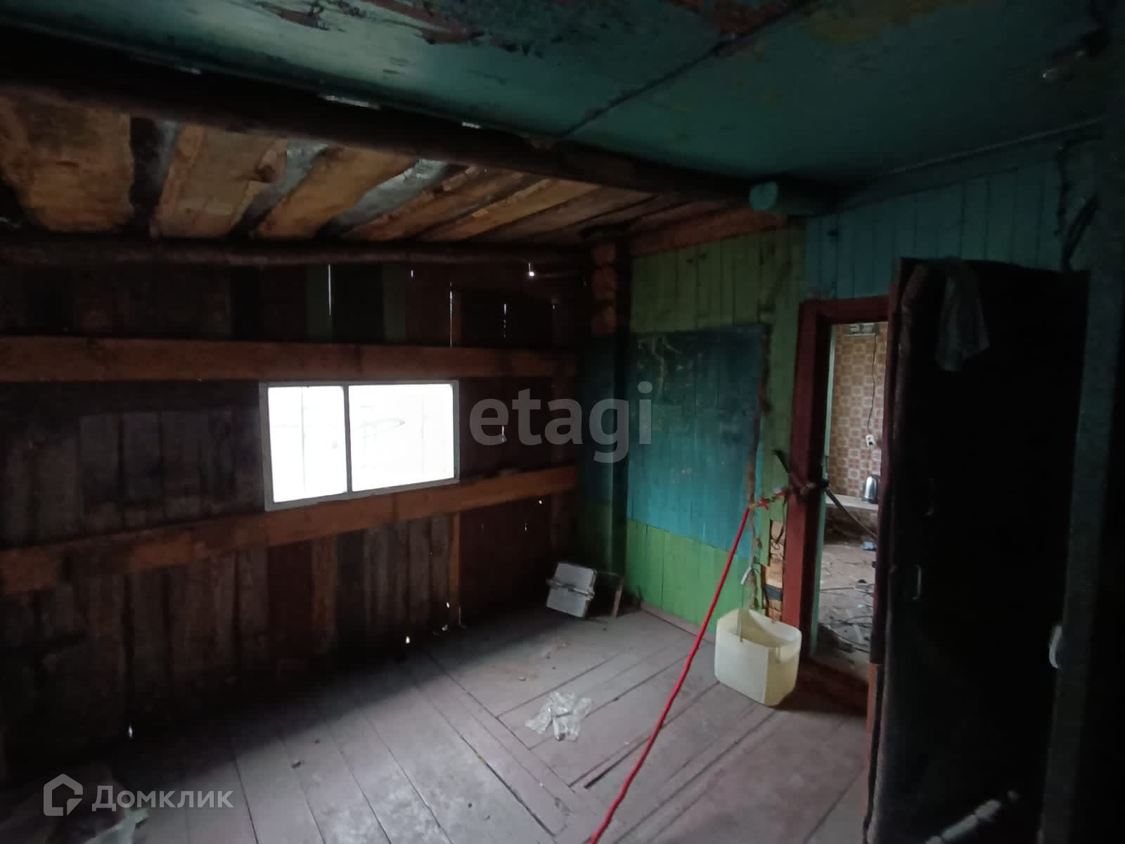 Площадь дома 25,9 кв. м на земельном участке 3 сотки .Дом стоит на фундаменте, построен из бревен, крыша шифер . Состоит из одной комнаты, кухни и веранды. Дверь - деревянная, стены – обои , потолок- двп , окна – деревянные и ПВХ , полы – дерево.