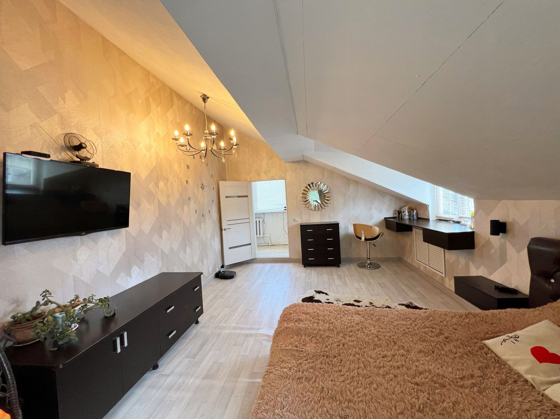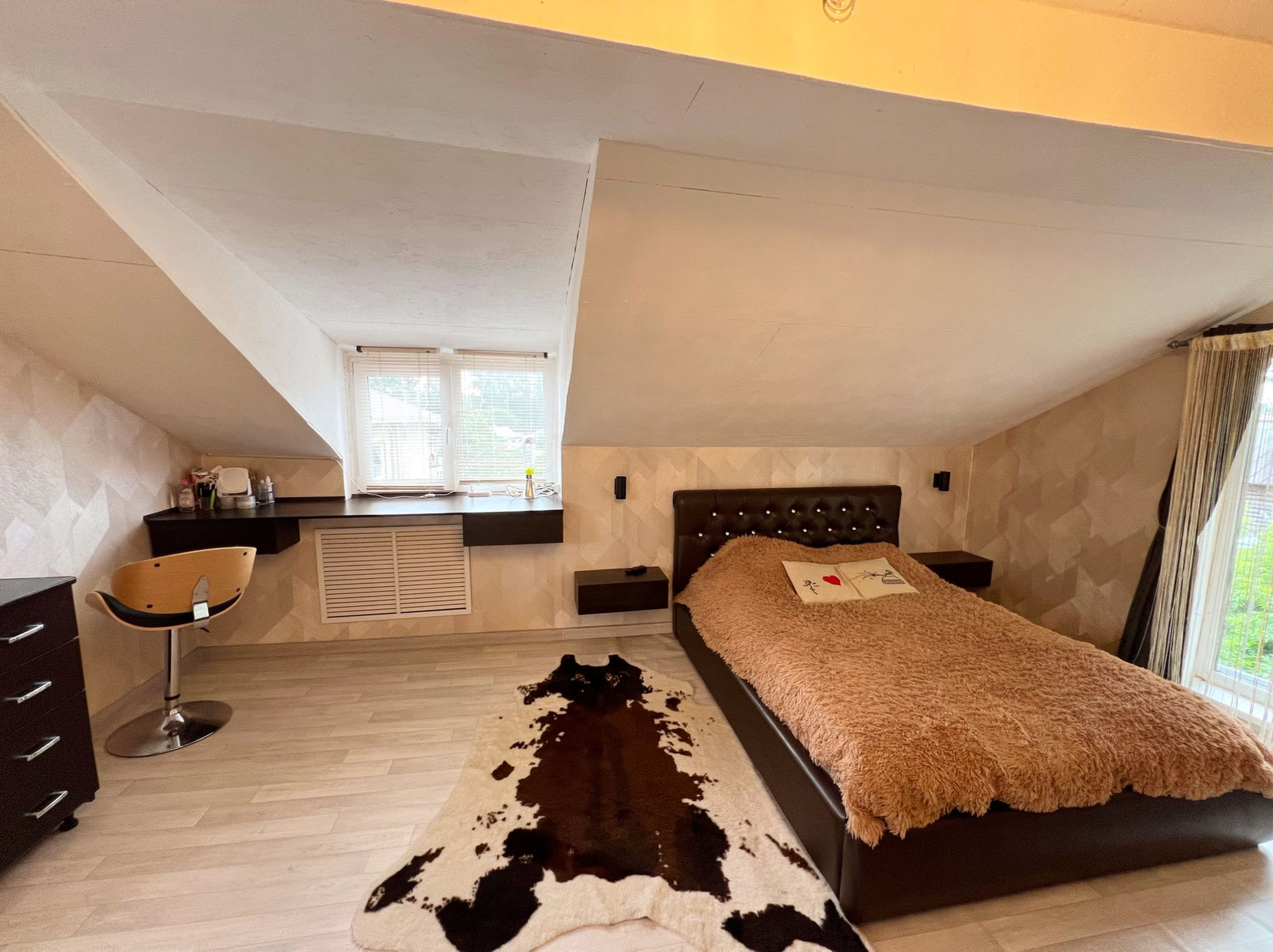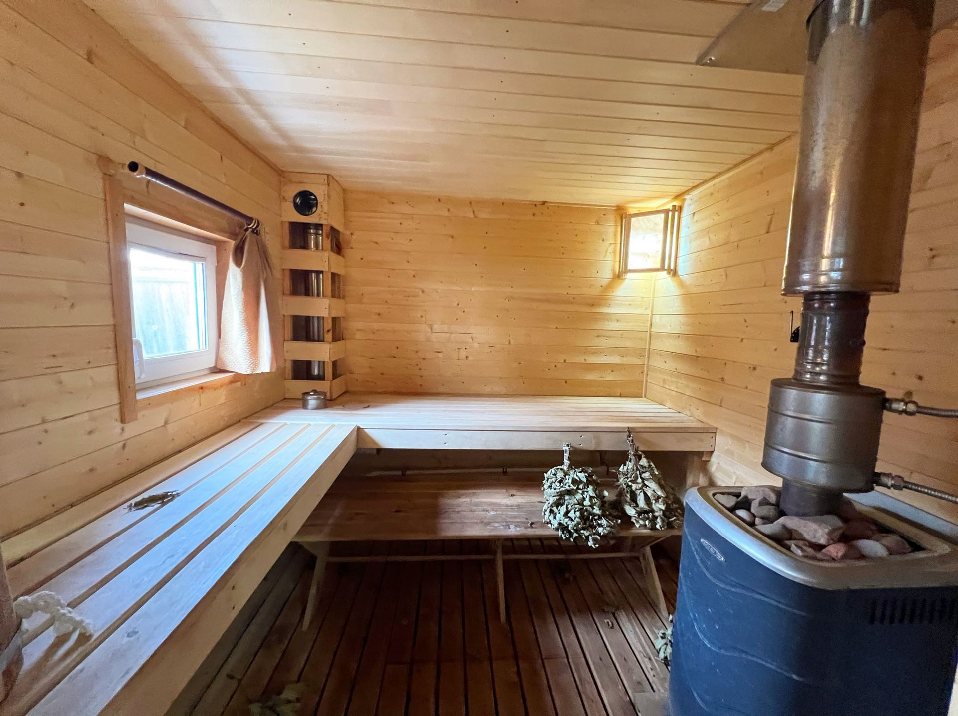В доме две комнаты, кухня гостиная, раздельные санузлы. Коммуникации: отопление - газовый котел, водоснабжение центральное, канализация - выгребная яма, электричество 380 Вольт.