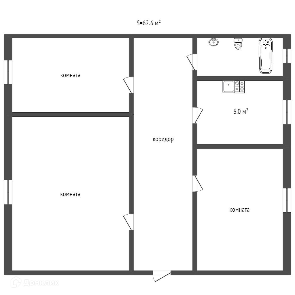Общая площадь 62.6 м2