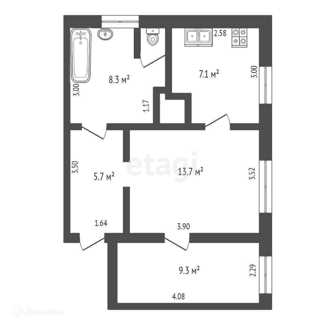 Общая площадь 44.1 м2