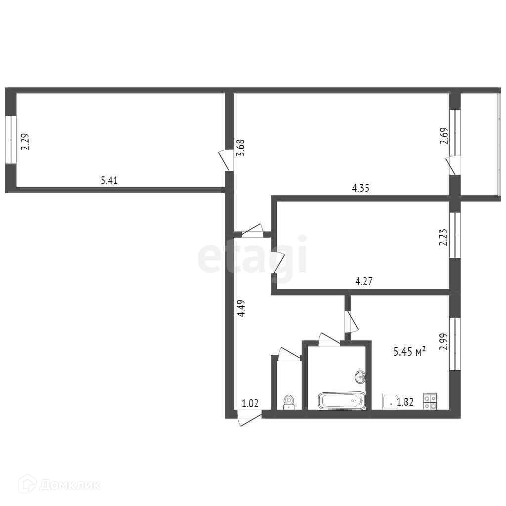 Общая площадь 54.4 м2