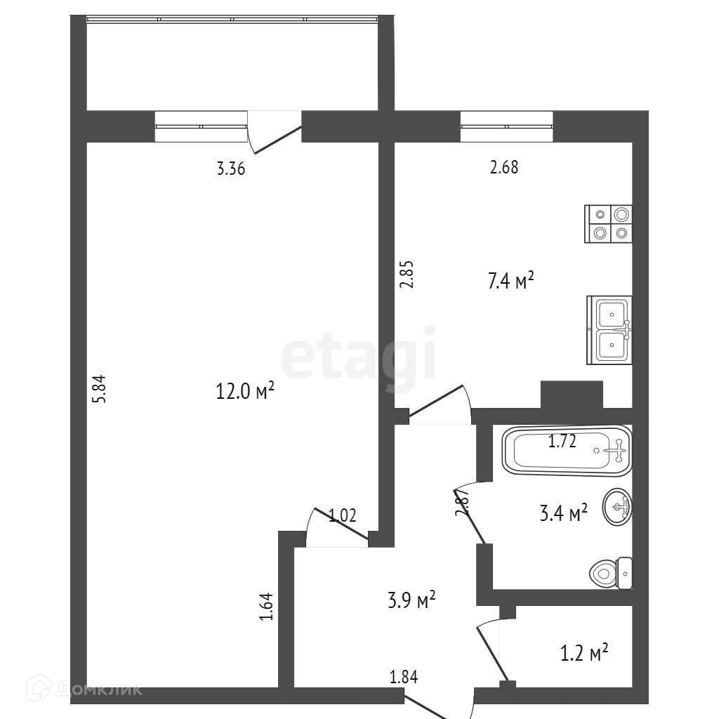 Площадь кухни 7.4 м2