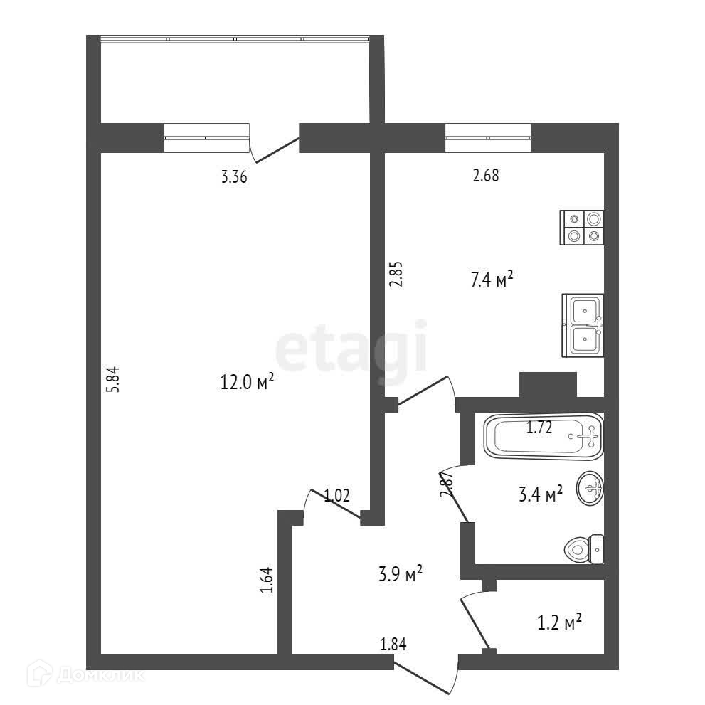 Общая площадь 33.9 м2