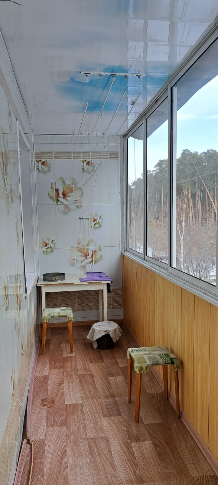 Квартира расположена в тихом красивом месте, с лоджии открывается вид на лес. В квартире частично остаётся мебель.
