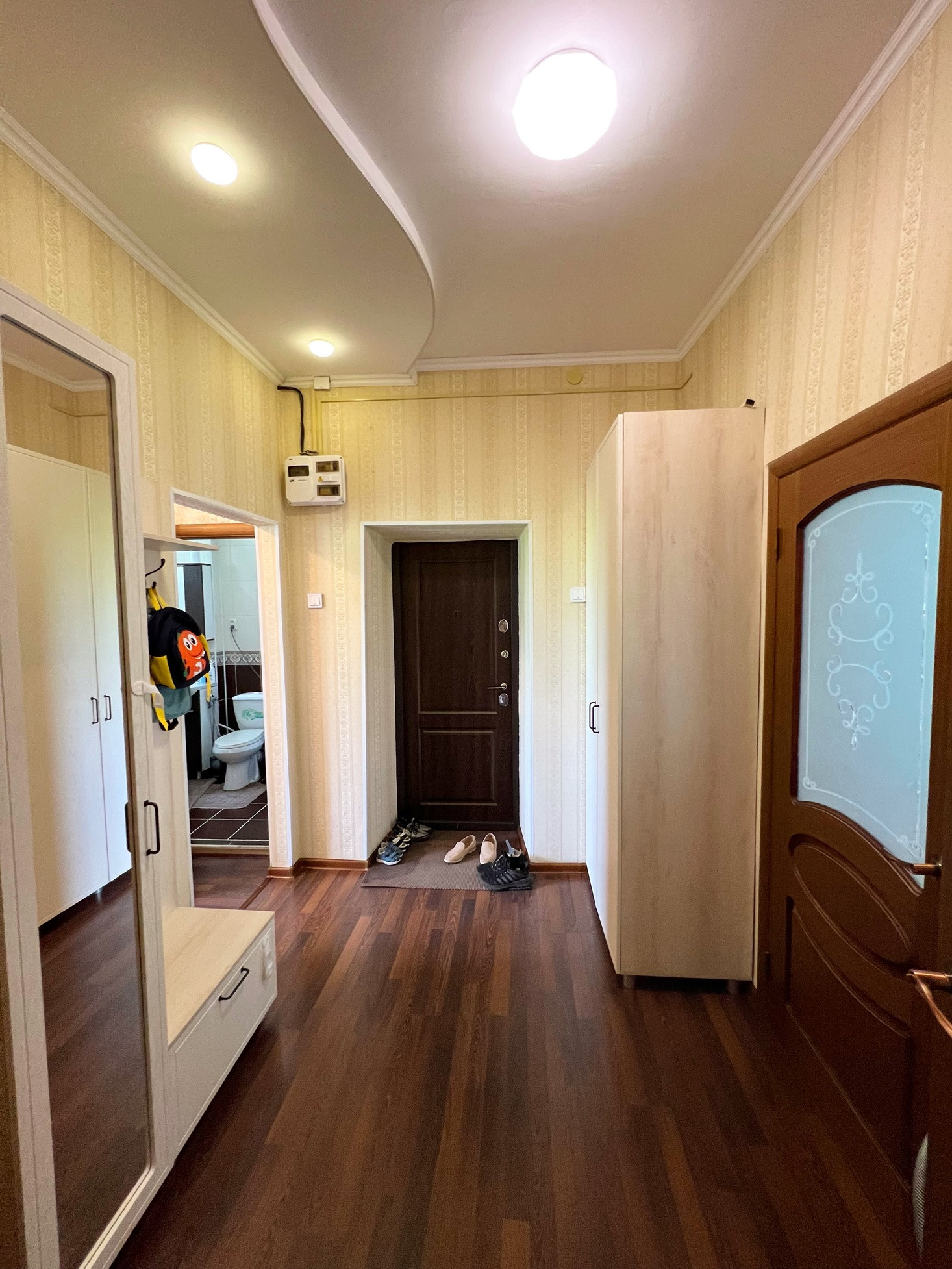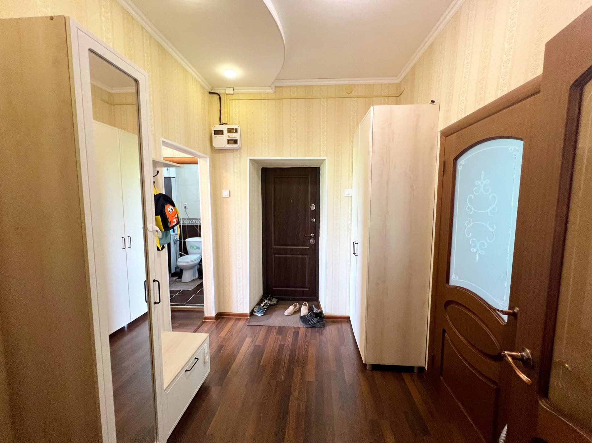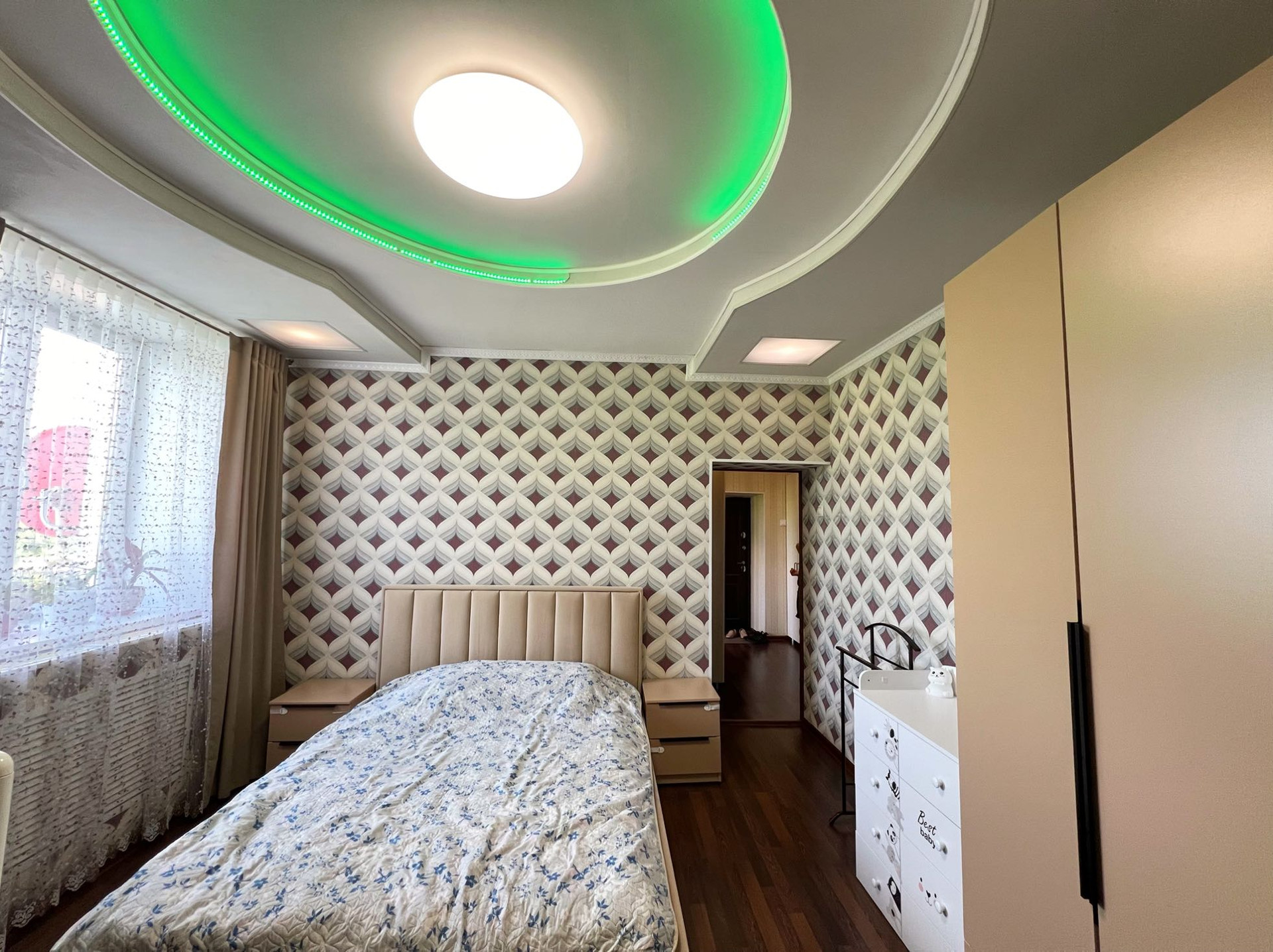 Площадь 70 кв.м., этаж 2/2. В квартире сделан качественный ремонт, ламинат, двухуровневые потолки, межкомнатные двери, пластиковые окна, санузел в кафеле.  В ванной и детской комнатах сделан теплый пол. Квартира улучшенной планировки, высокие потолки 3 м., изолированные комнаты, просторная кухня, лоджия.