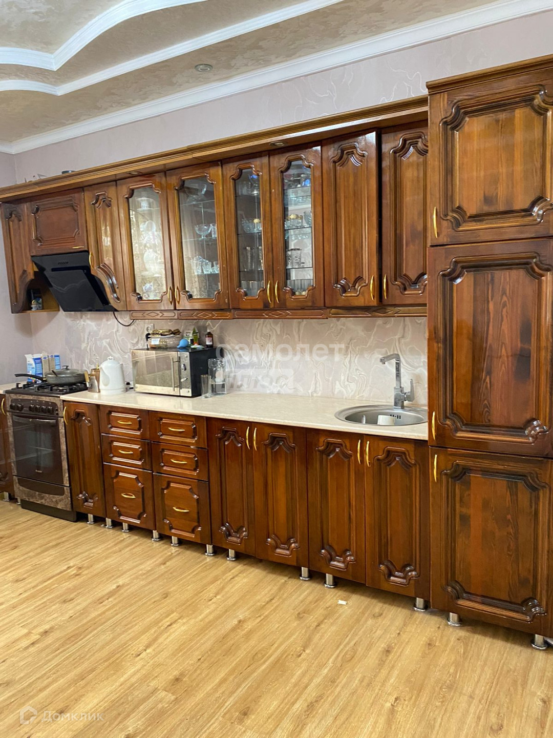 — кухонный гарнитур, вытяжка, стиральная машина, газовая плита, микроволновка,