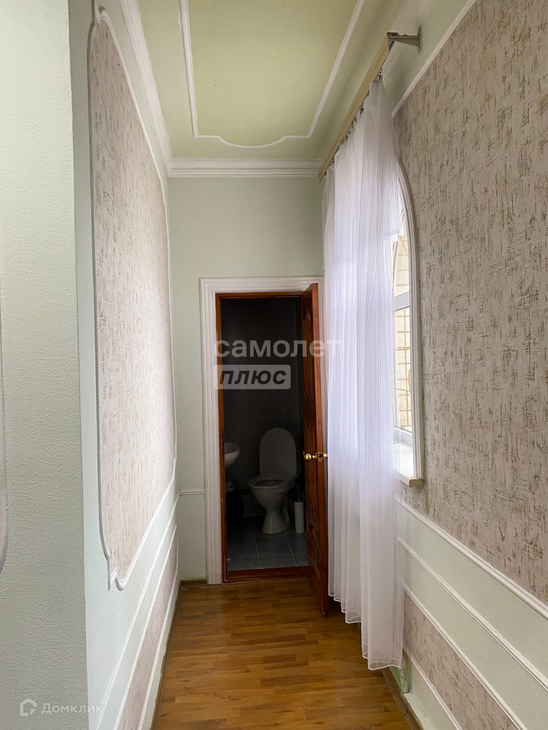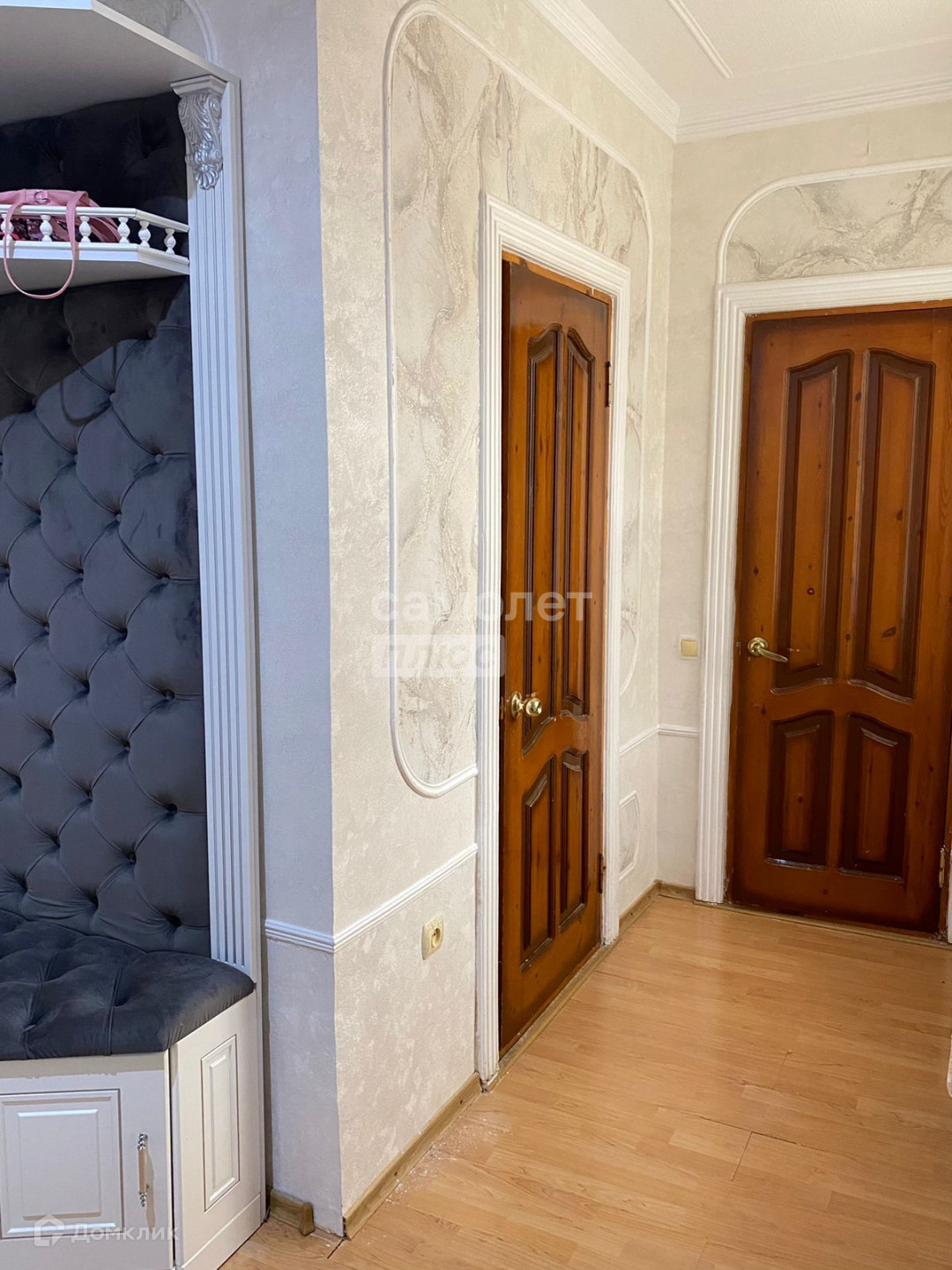 — поклеены современные обои, на полу ламинат,