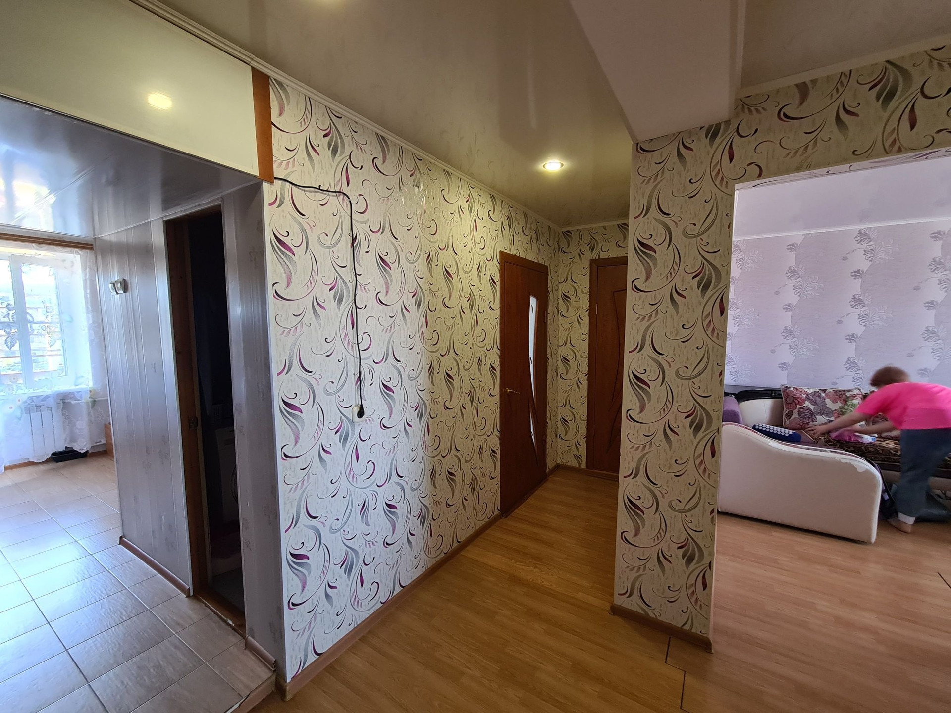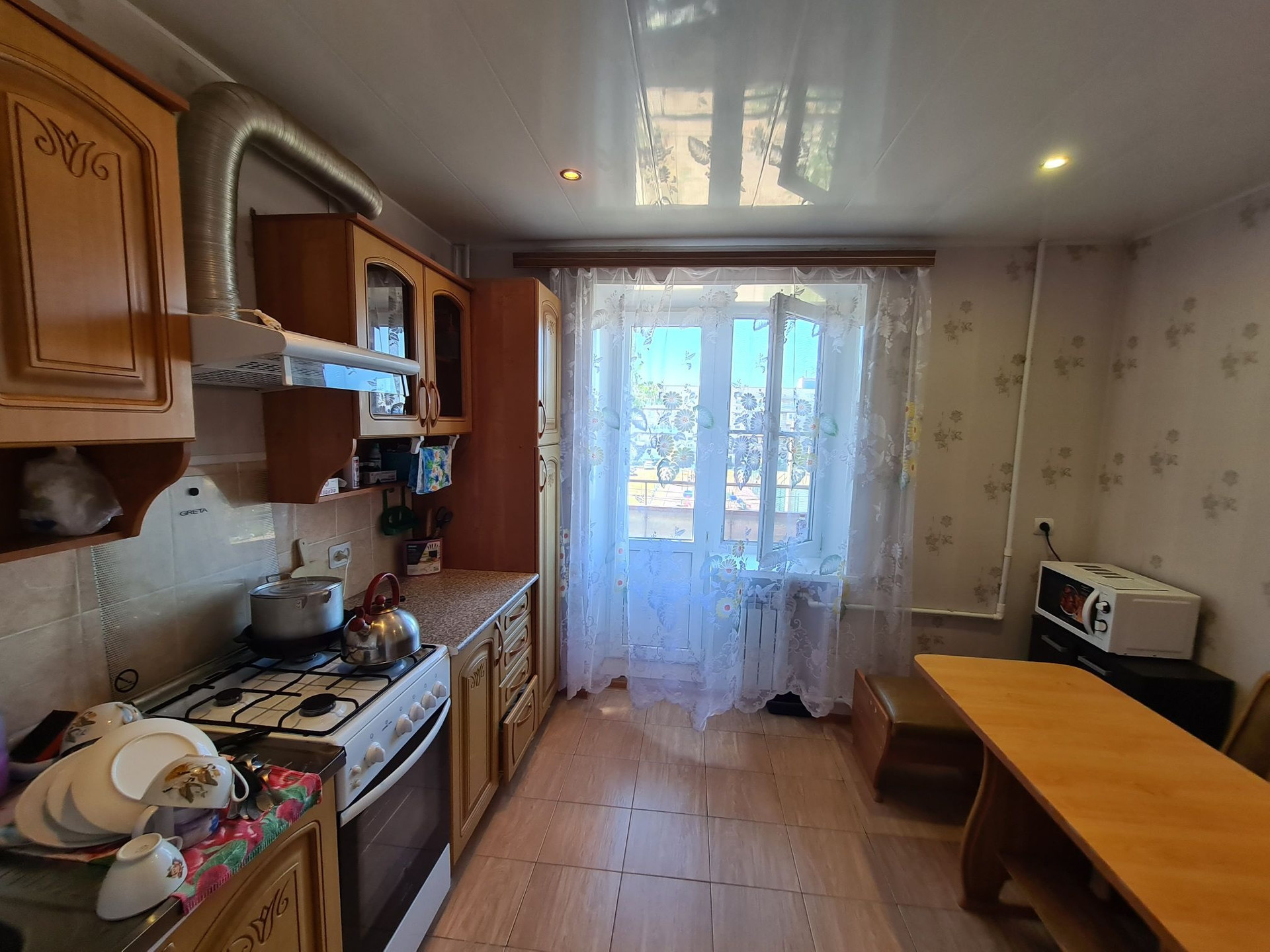 Квартира в отличном состоянии, все окна пвх, полы и стены выровненны, ванная комната отделана плиткой, натяжные потолки. Удобная планировка, все комнаты изолированны, просторная прихожия, большая кухня, окна выходят на обе стороны дома, есть балкон и большая лоджия.