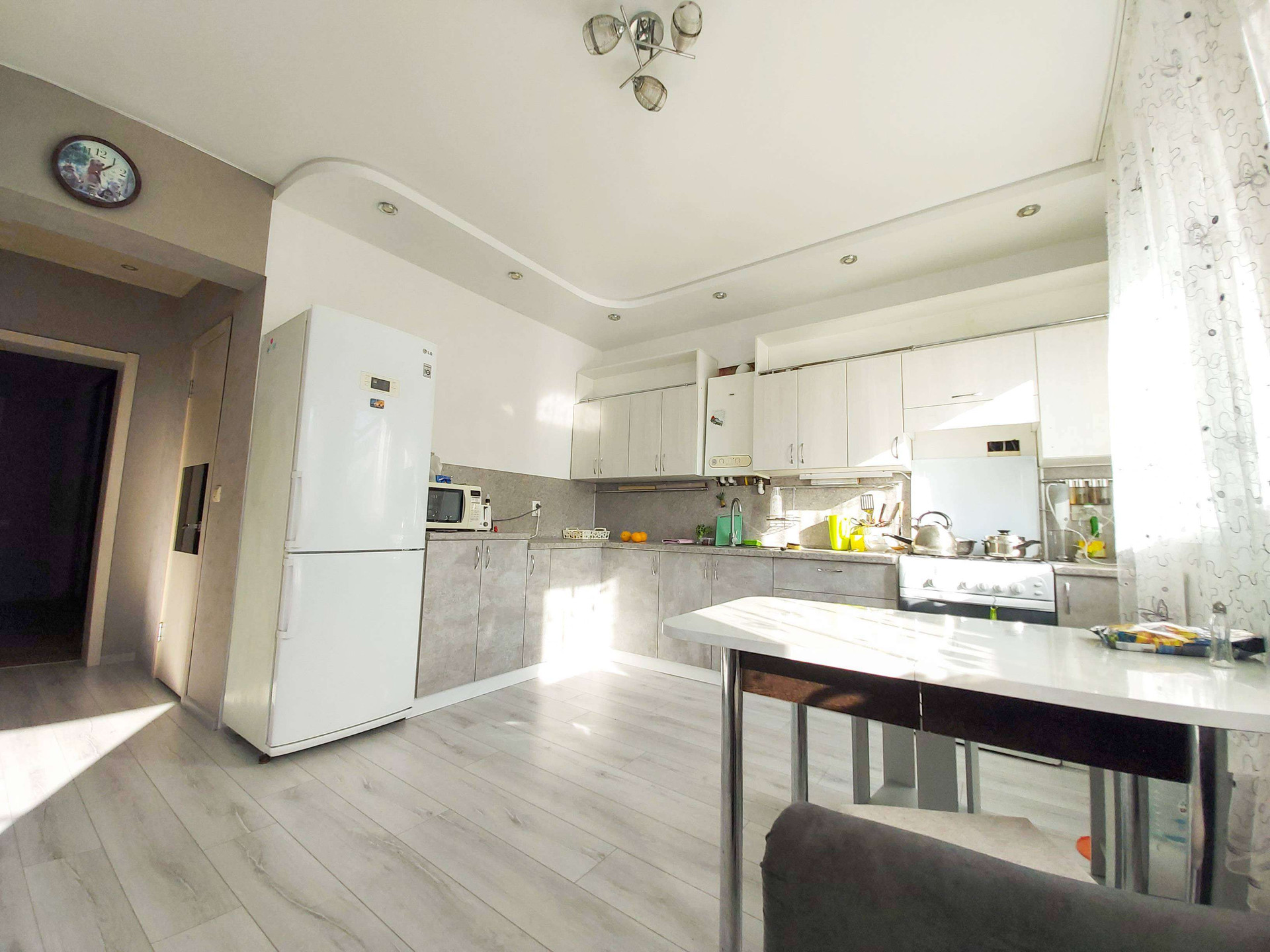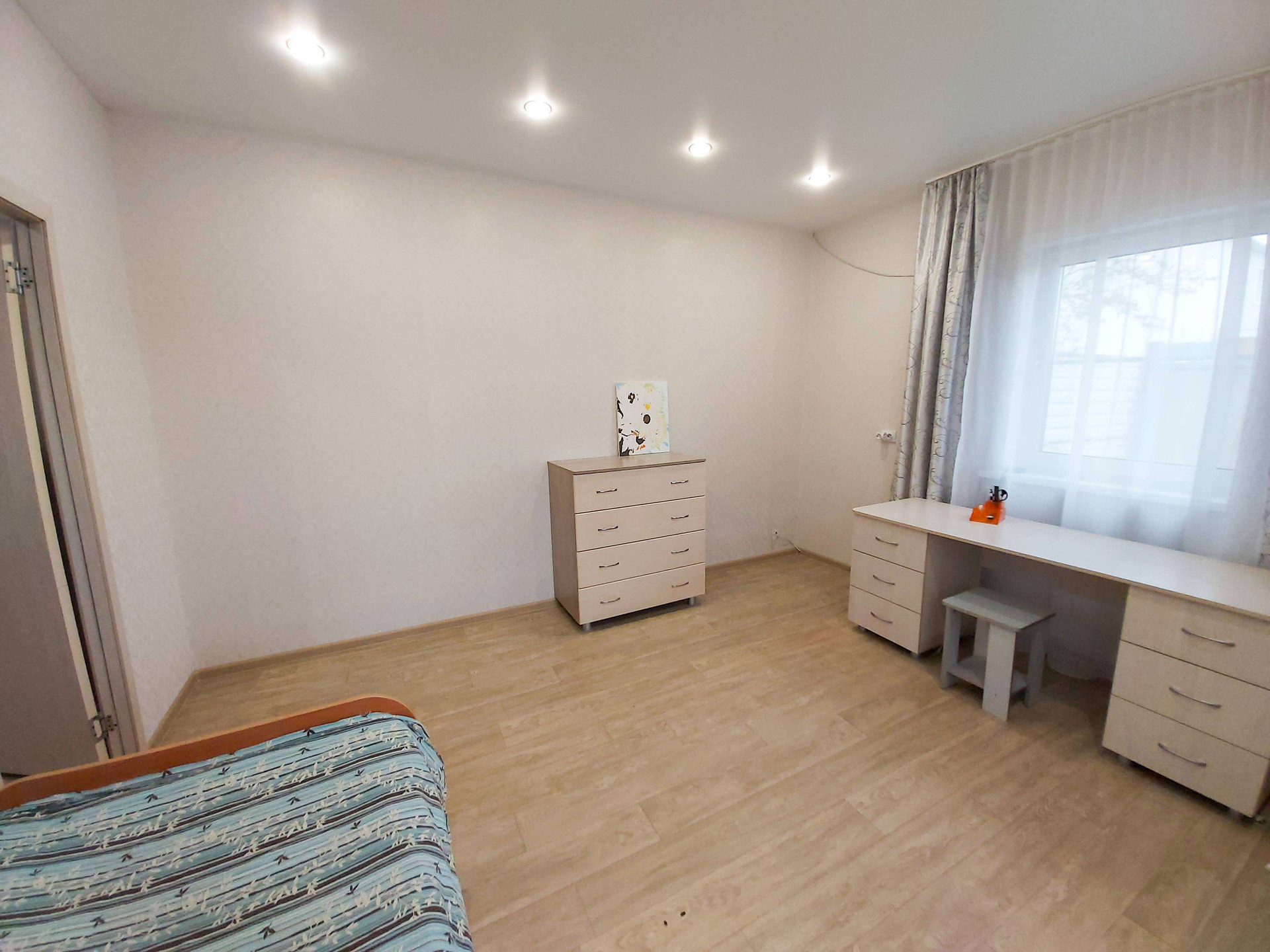 - на 1 этаже   просторная прихожая, гостевая спальня, гардеробная,  большая кухня 15 кв.м и гостинная;